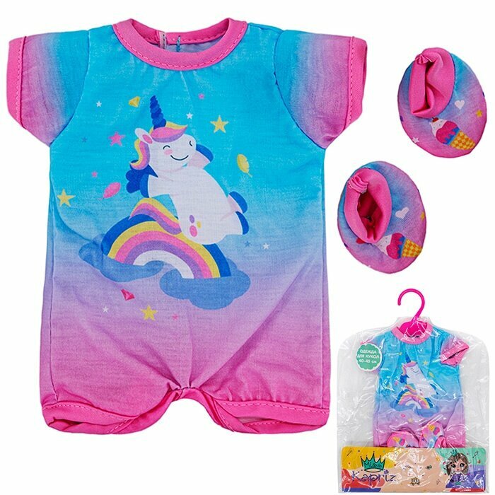 Купить Одежда для пупса Miss Kapriz размер от 40 до 45 см, боди розово-голубой с единорогом, носочки (FCJ0744419)