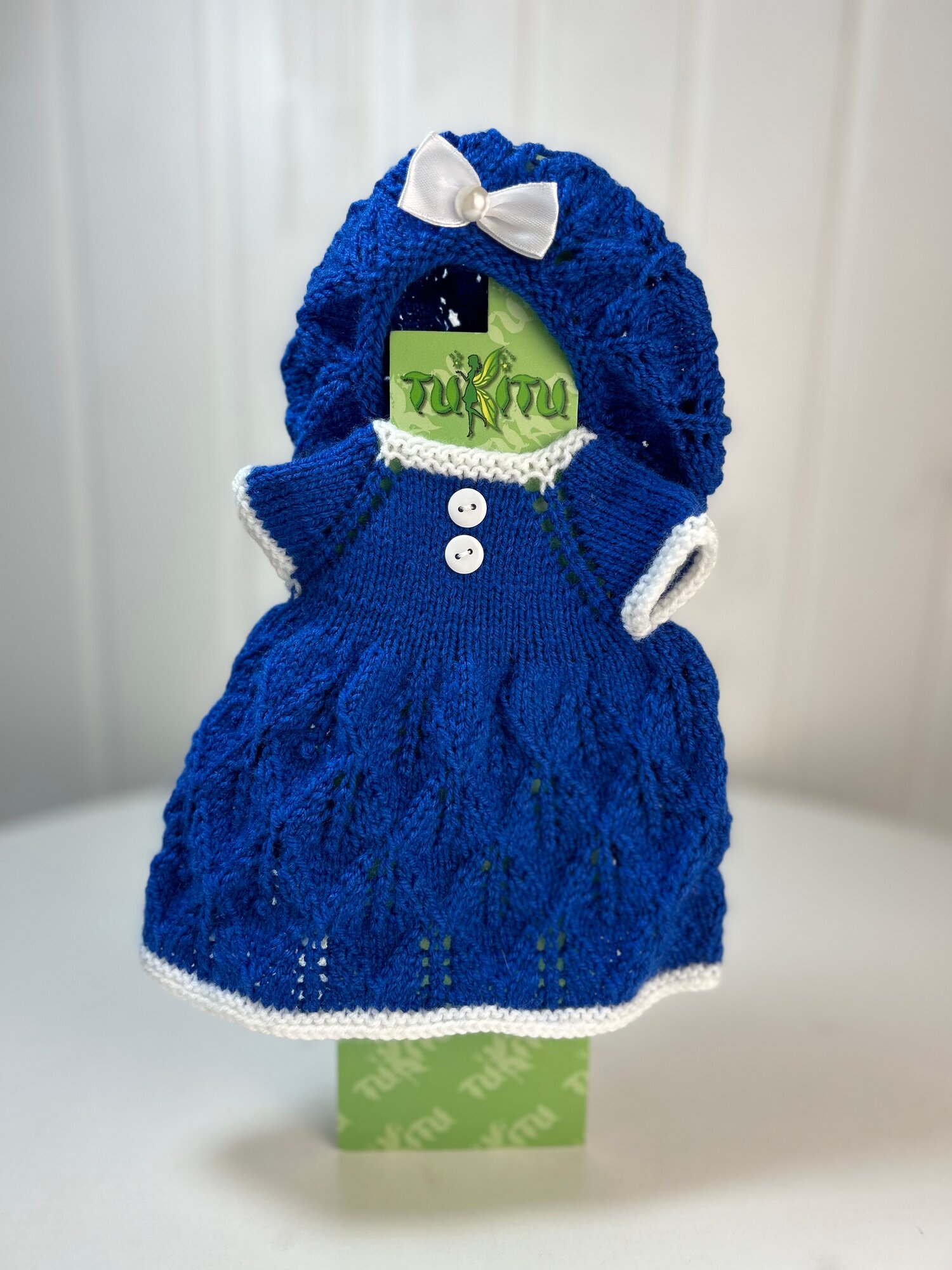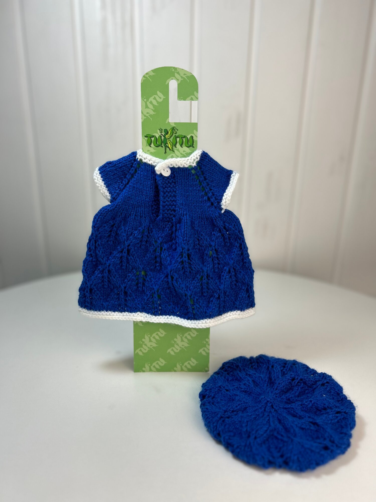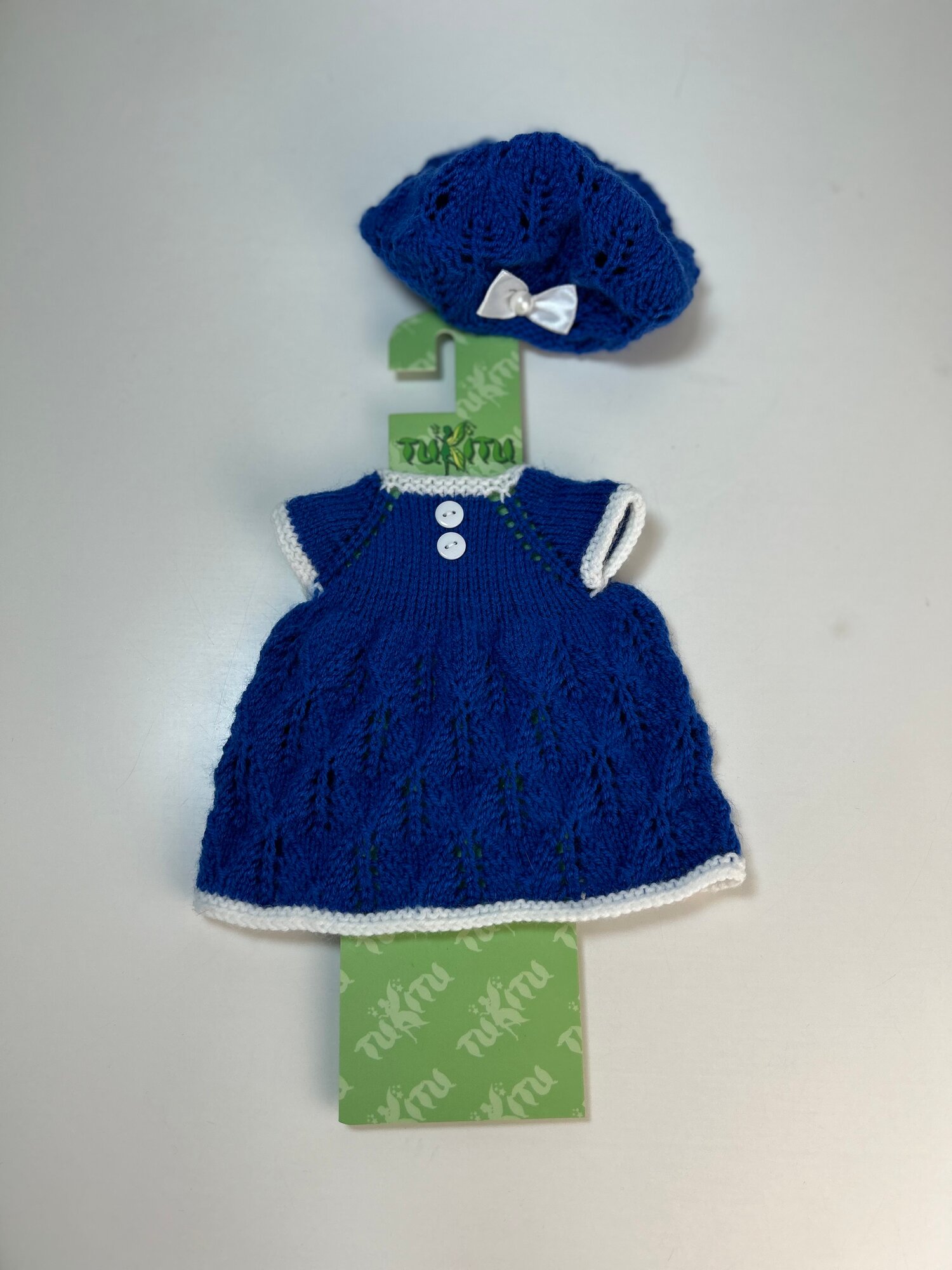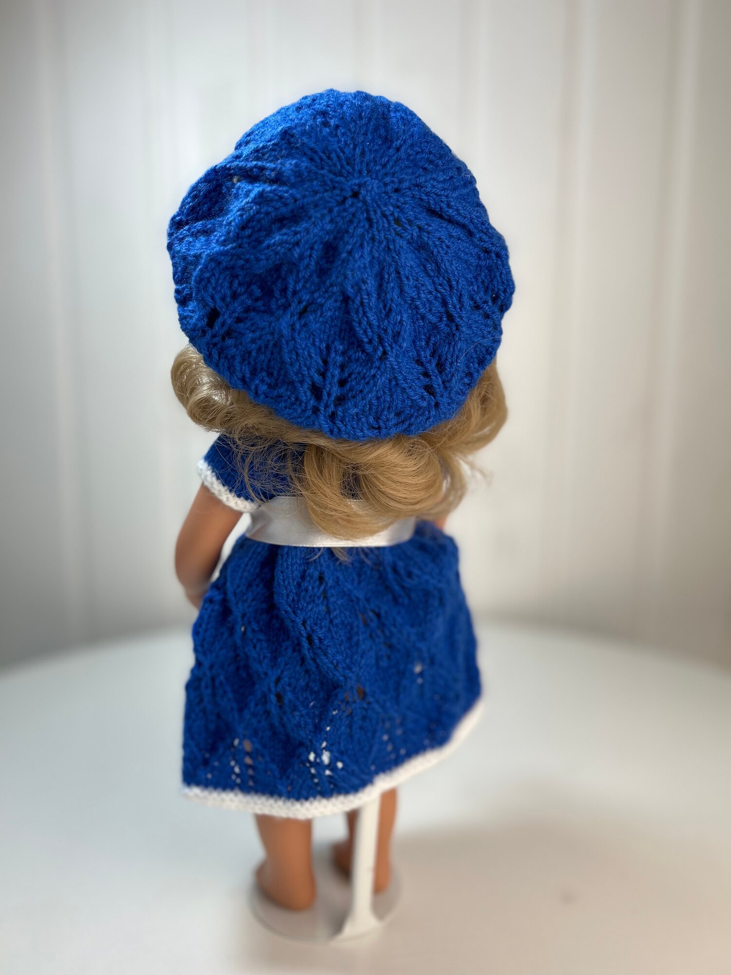Купить Комплект одежды для кукол 34-40 см: вязаное платье и берет "Василек", арт. 173