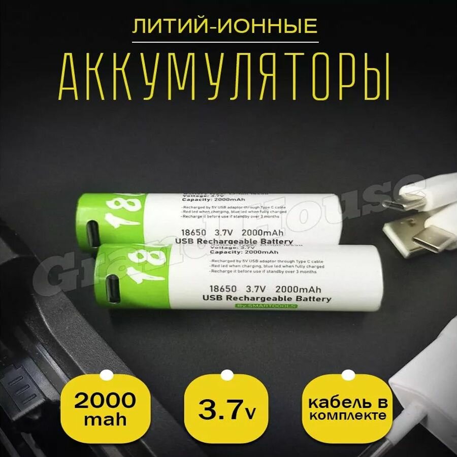 Аккумулятор 18650 2000 mAh с зарядкой интересное: