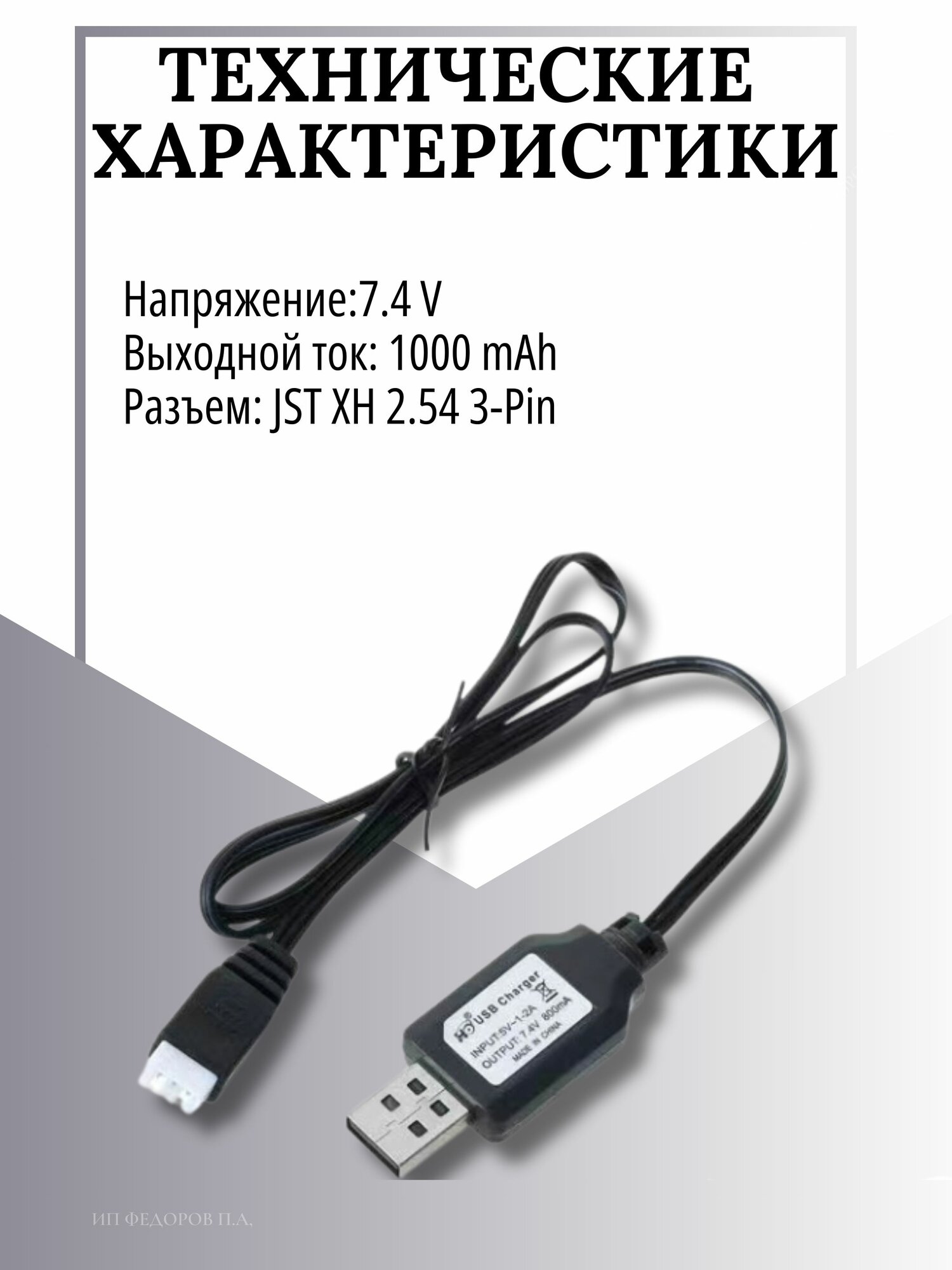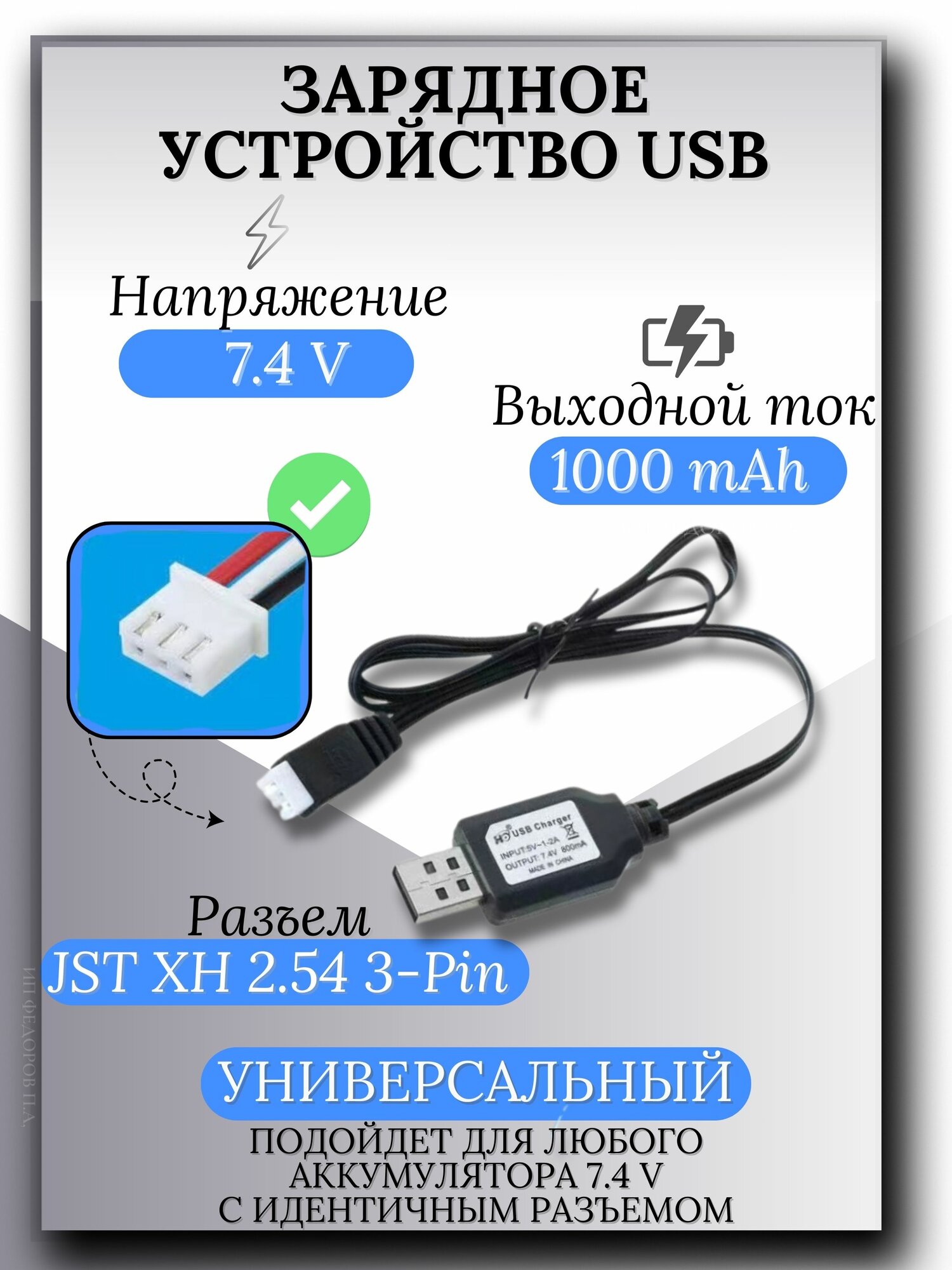 Купить Зарядное устройство для аккумуляторов USB 7.4V, разъём JST XH 2.54 3pin