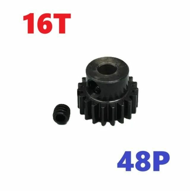 Купить Шестерня пиньен 16Т 48Р на вал мотора 3.17 мм тюнинг запчасти 16 зубов 16T модуль 48P шестеренка пиньон сталь PINION GEAR 16 зубьев р/у