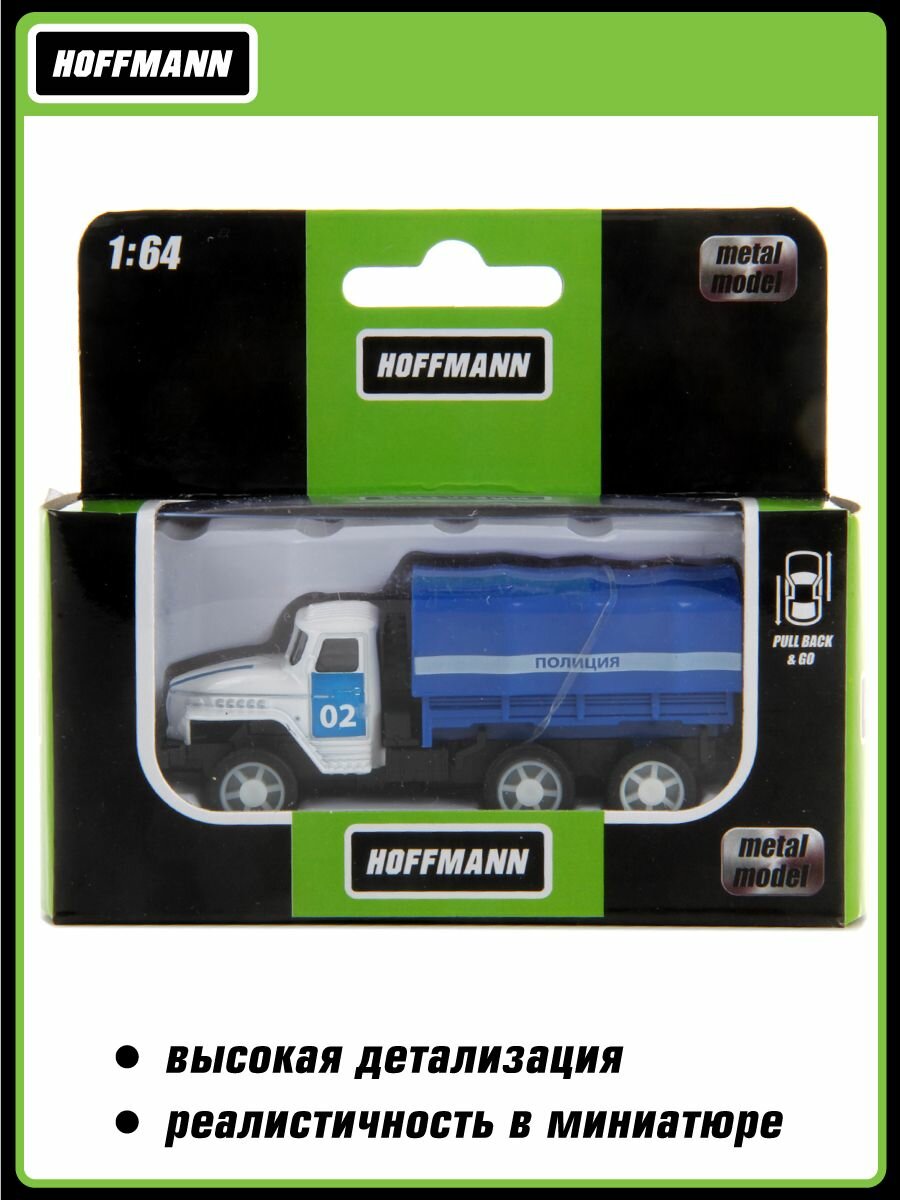 Купить Грузовик коллекционный металлический Полиция 1:64, Hoffmann / Детская инерционная машинка спецслужб, игрушка для мальчиков / Модель полицейской машины для детей