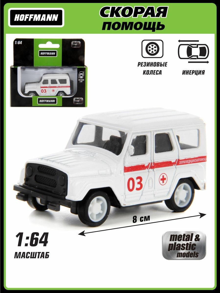 Купить Машинка коллекционная металлическая Скорая помощь внедорожник 1:64, Hoffmann / Детская инерционная игрушка для мальчиков / Игрушечный транспорт для детей, модель машины спецслужб