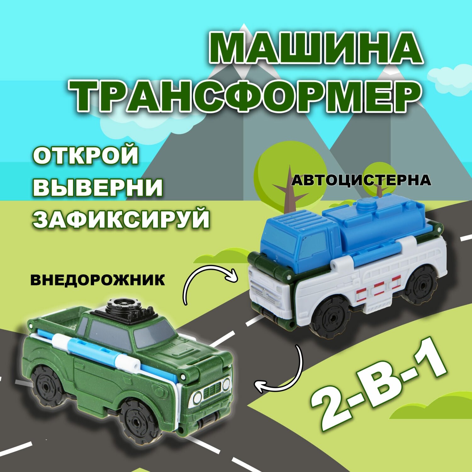 Купить Машинка 2в1 Transcar Double 1toy: автоцистерна – внедорожник