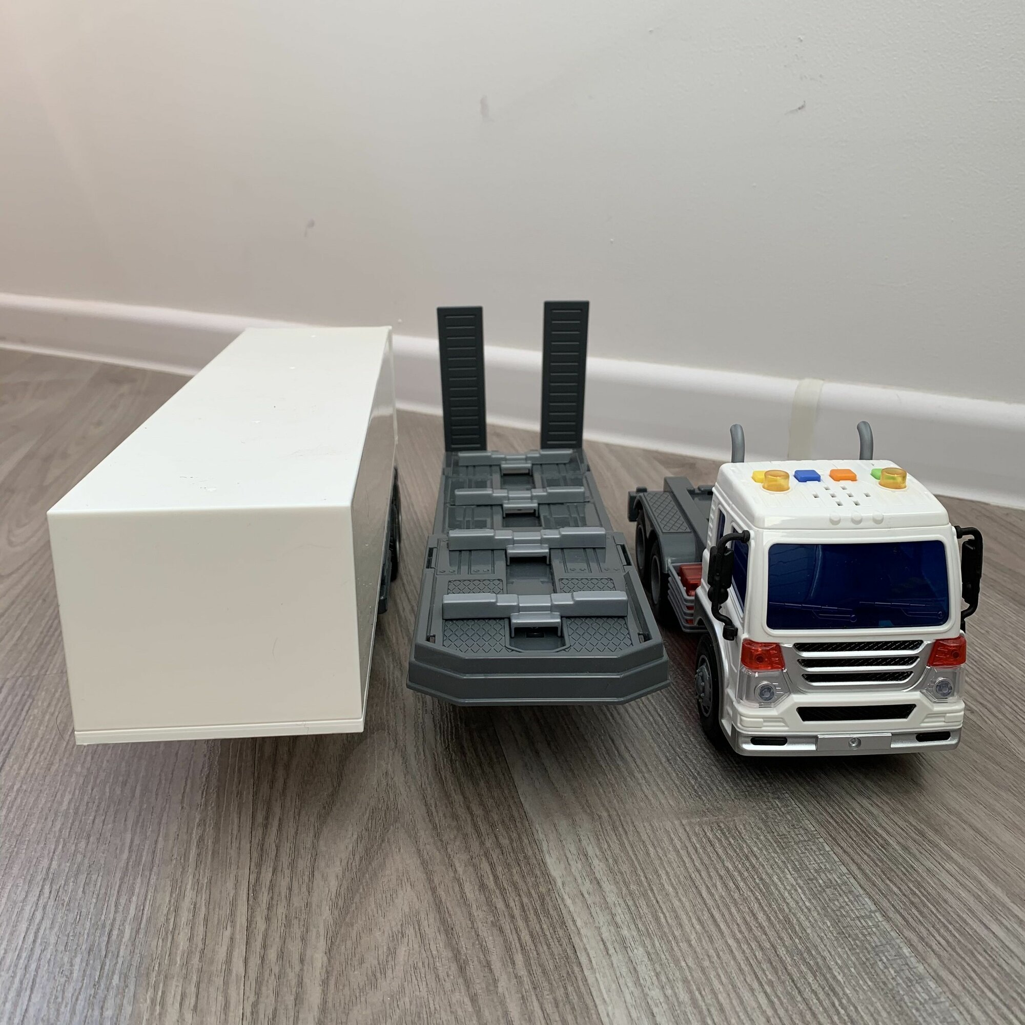 Купить Набор 2 в 1: машинка фура 47 см + платформа автовоза (динамо-инерция, 4 звука, свет диодов) / Полесье