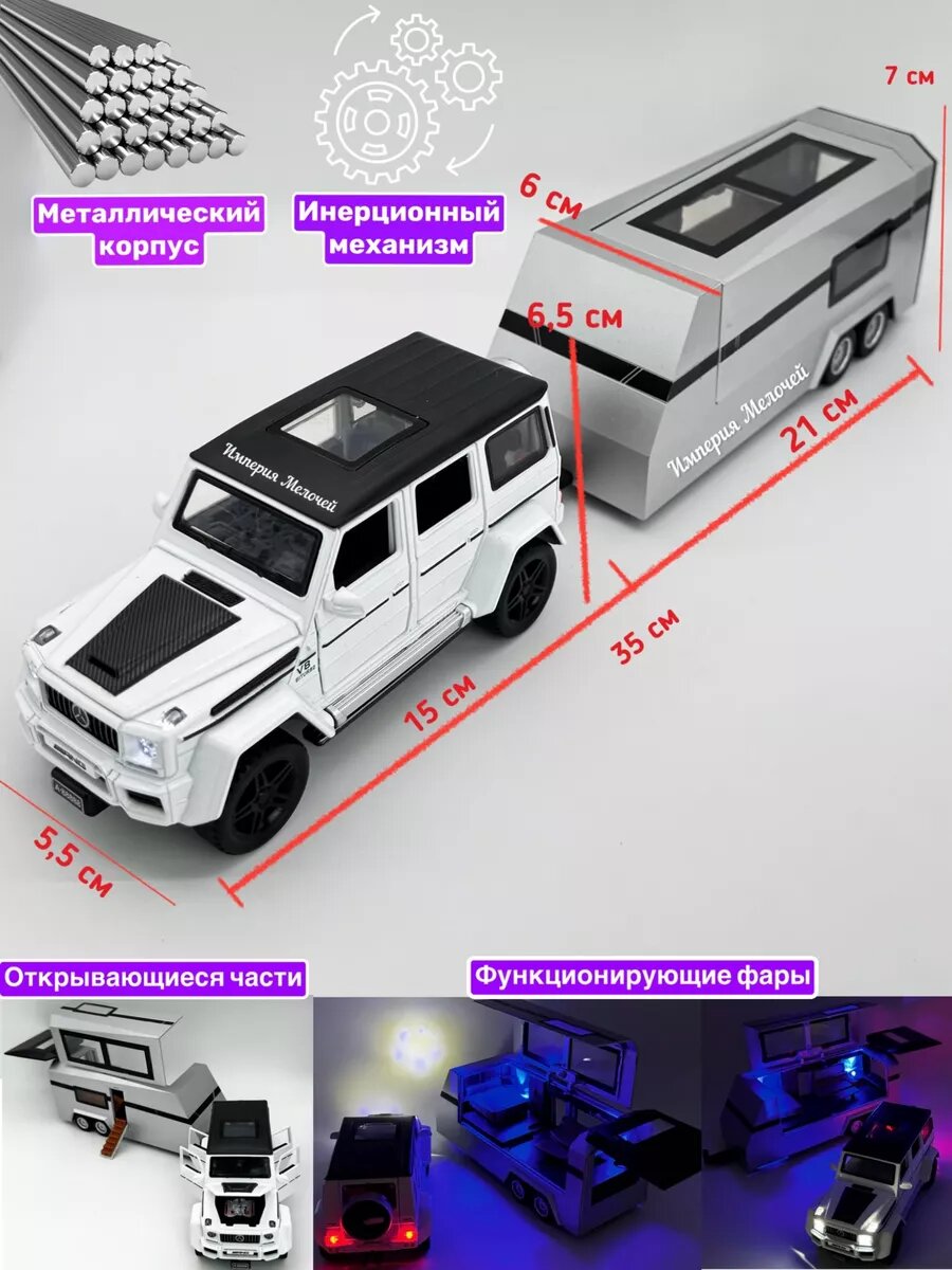 Машинка металлическая Империя Мелочей "Гелендваген", с домом на колёсах, 1:32