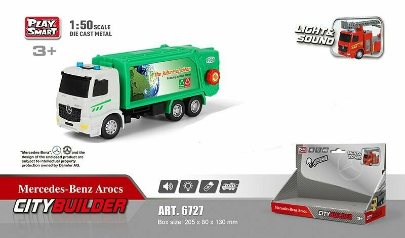 СохранитьДетская машинка Play Smart Мусоровоз Mersedes Benz Arocs, 20,5х8х13 см интересное: