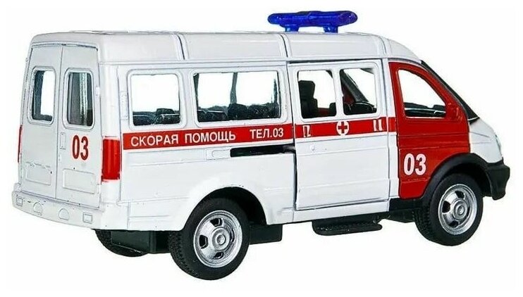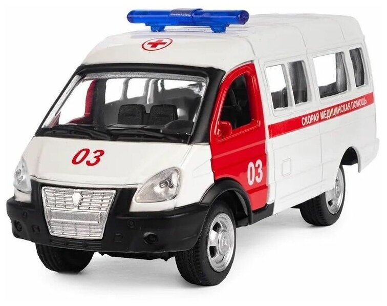 Инерционная металлическая машинка PlaySmart с открывающимися дверями, модель 1:50 "Скорая помощь" интересное: