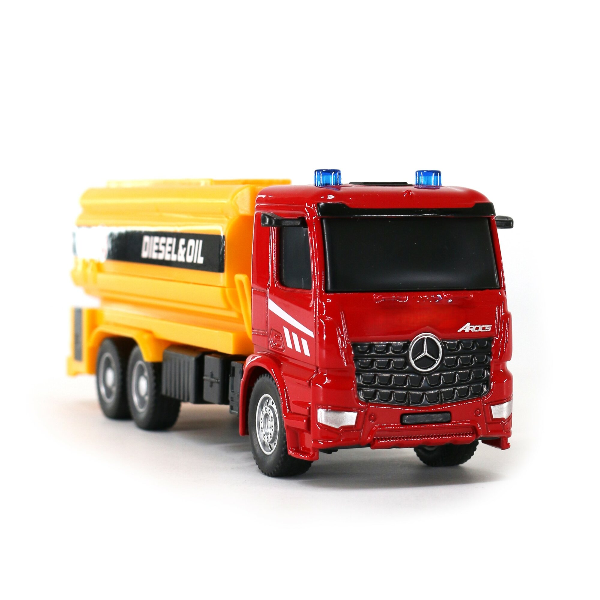 Автомобиль игрушечный "Бензовоз Mercedes-Benz" (красный) инерционный свет звук PLAY SMART 6719 интересное: