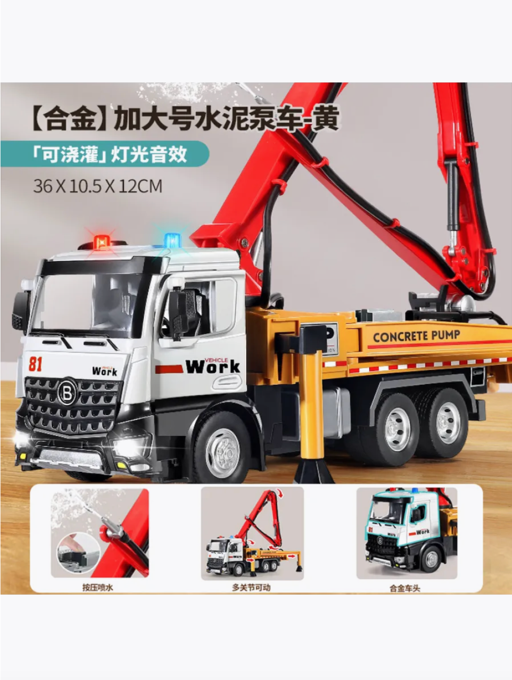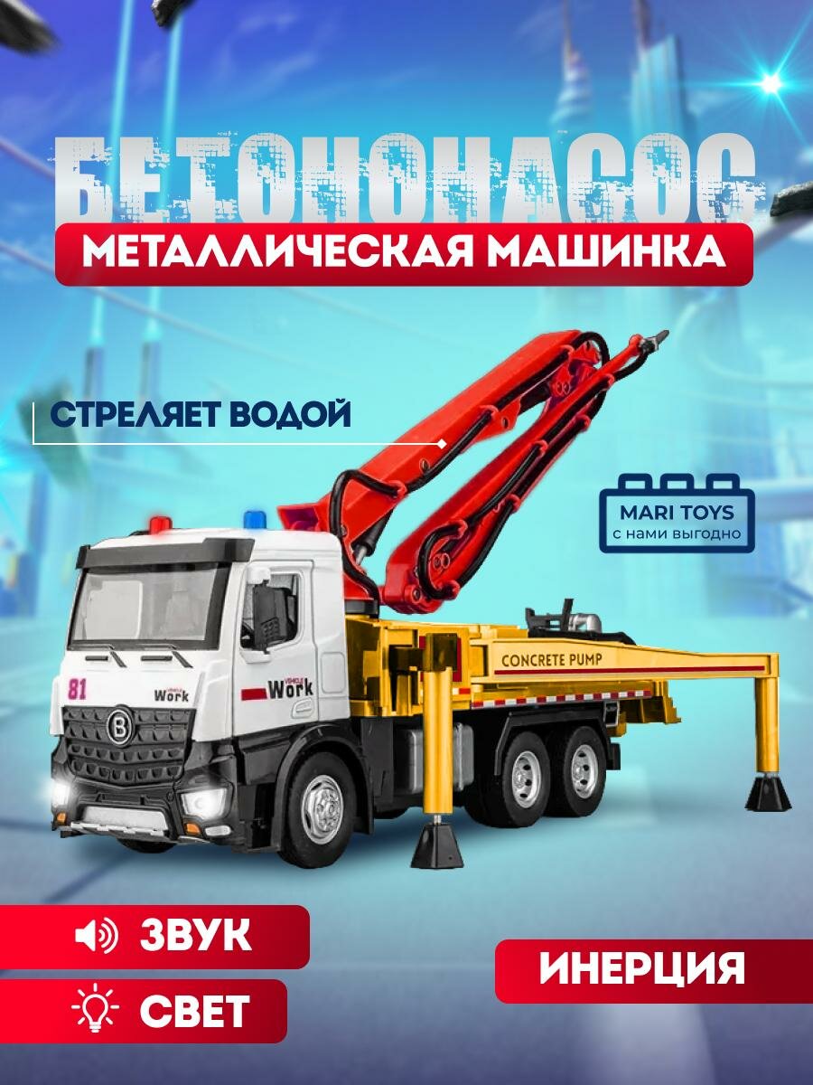 Машинка металлическая бетононасос с эффектами звука и света красный от MARI TOYS интересное: