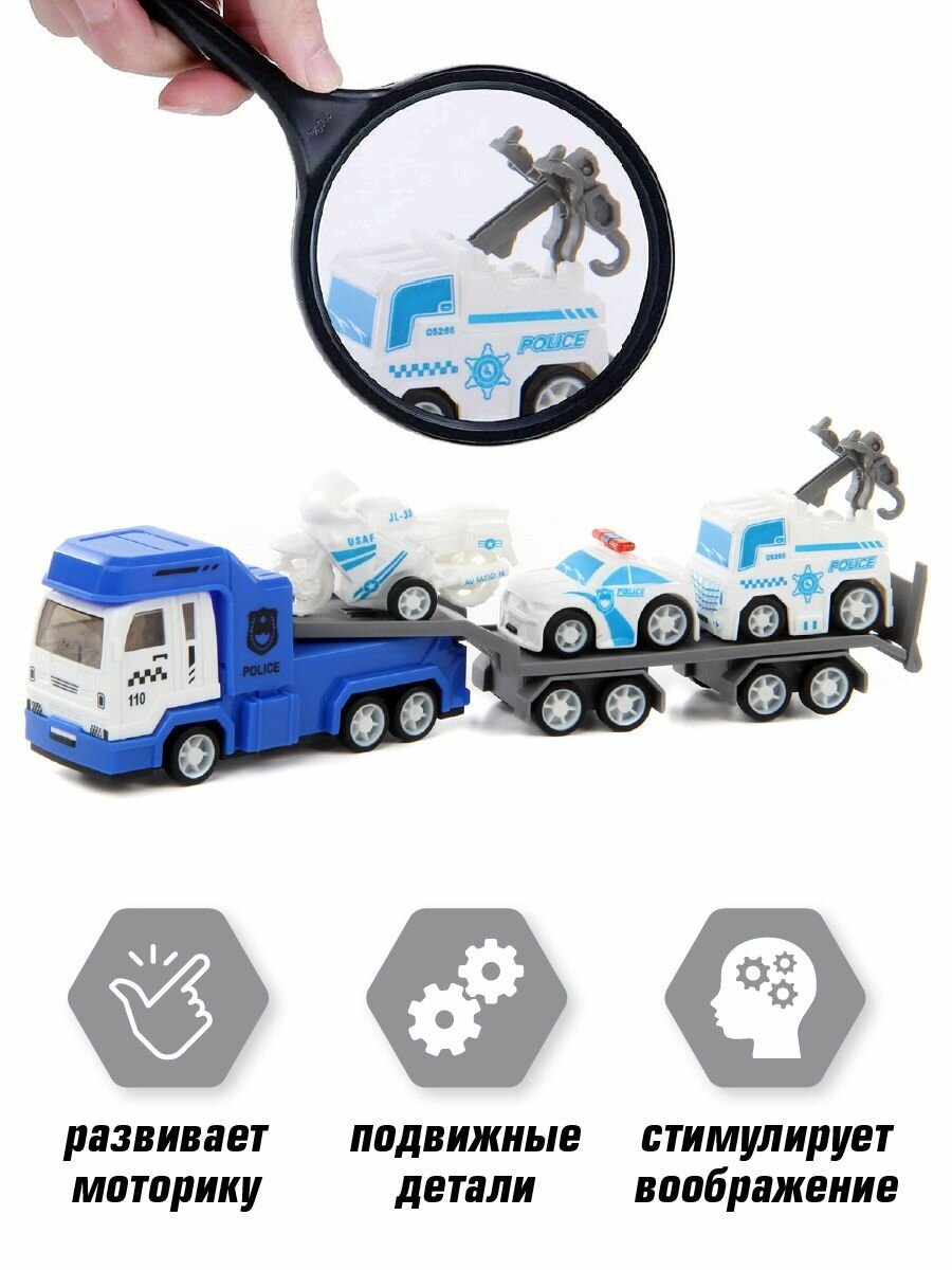 Купить Детский инерционный автовоз с машинками, Veld Co / Машина грузовик с прицепом для детей.