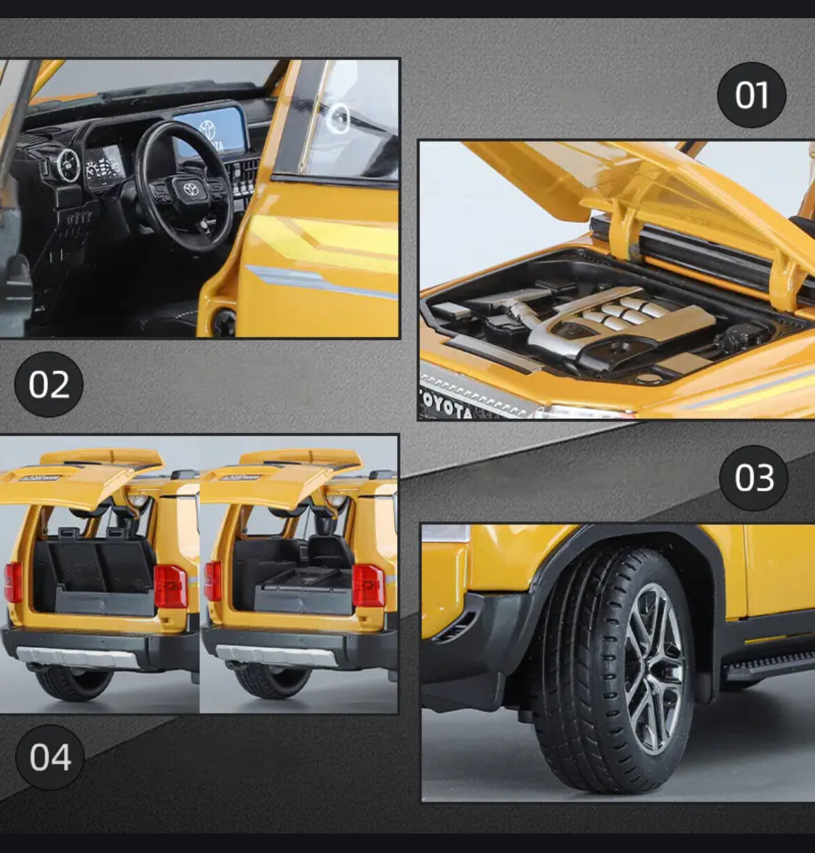 Коллекционная масштабная модель Toyota Land Cruiser Prado J250 2024 New 1:24 (металл, свет, звук) интересное: