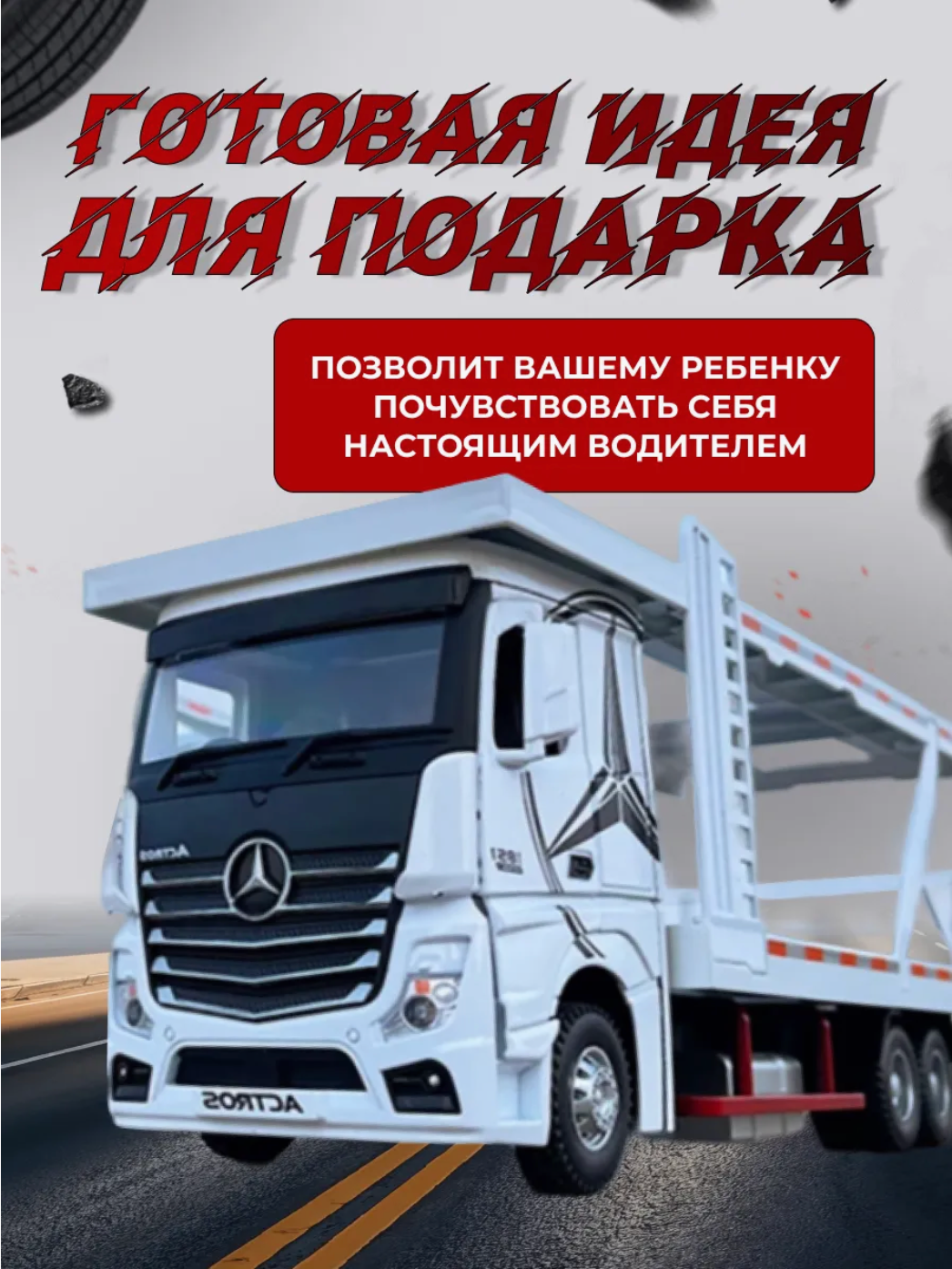 Металлическая модель грузового автомобиля Mercedes Actros. Автовоз в масштабе 1:24, Белый 60 см. интересное: