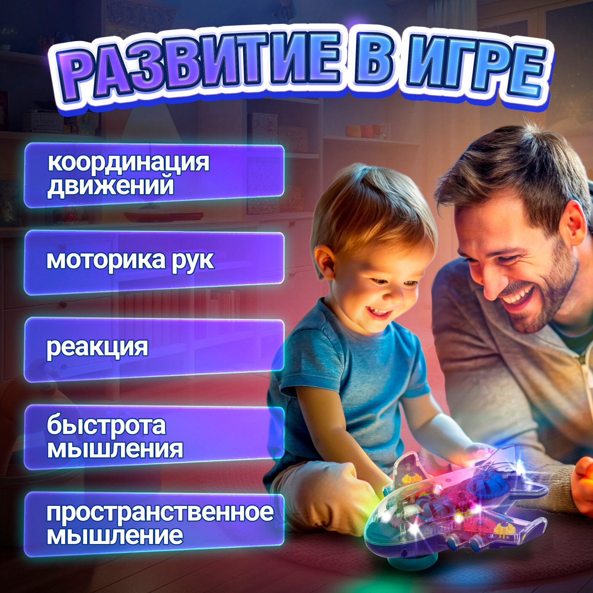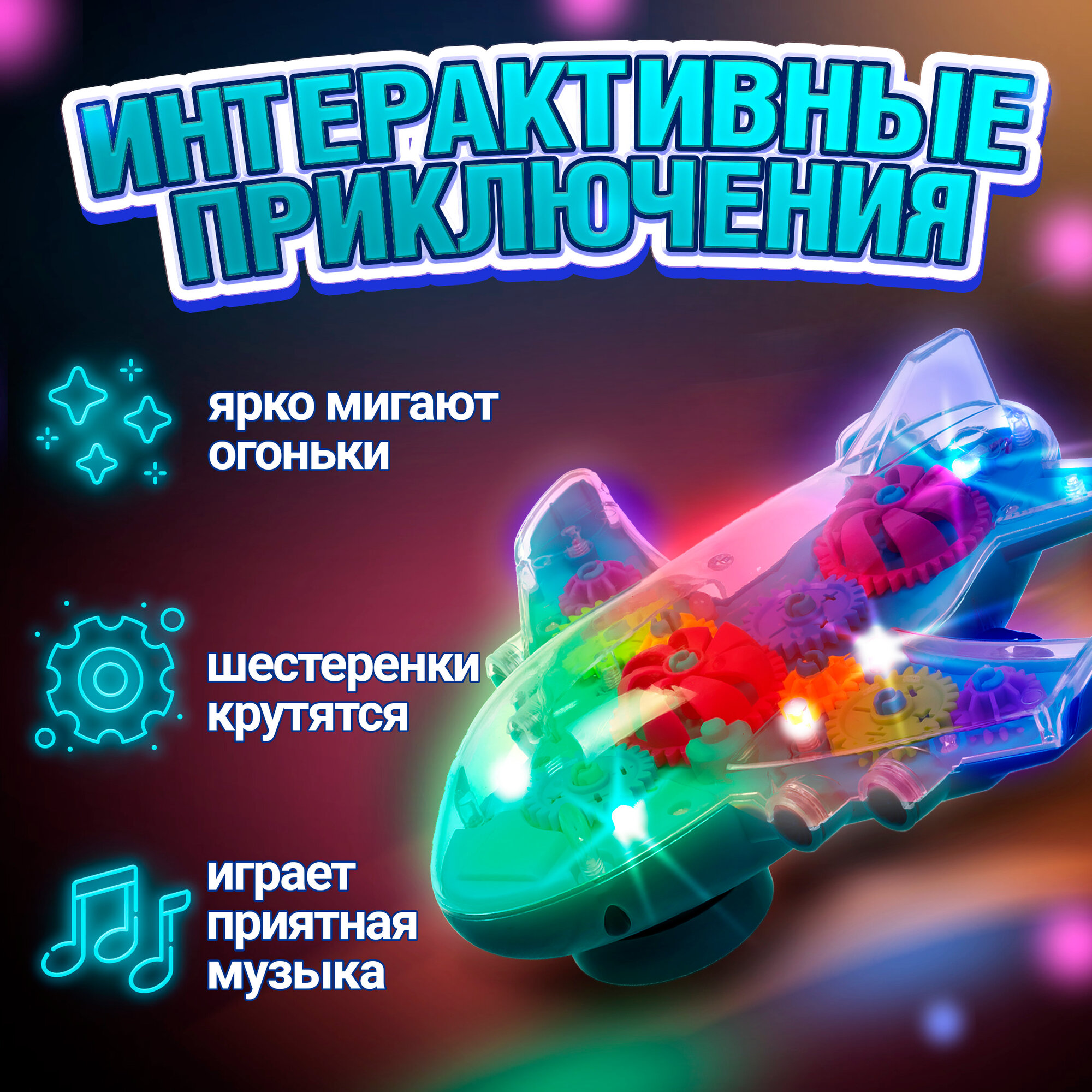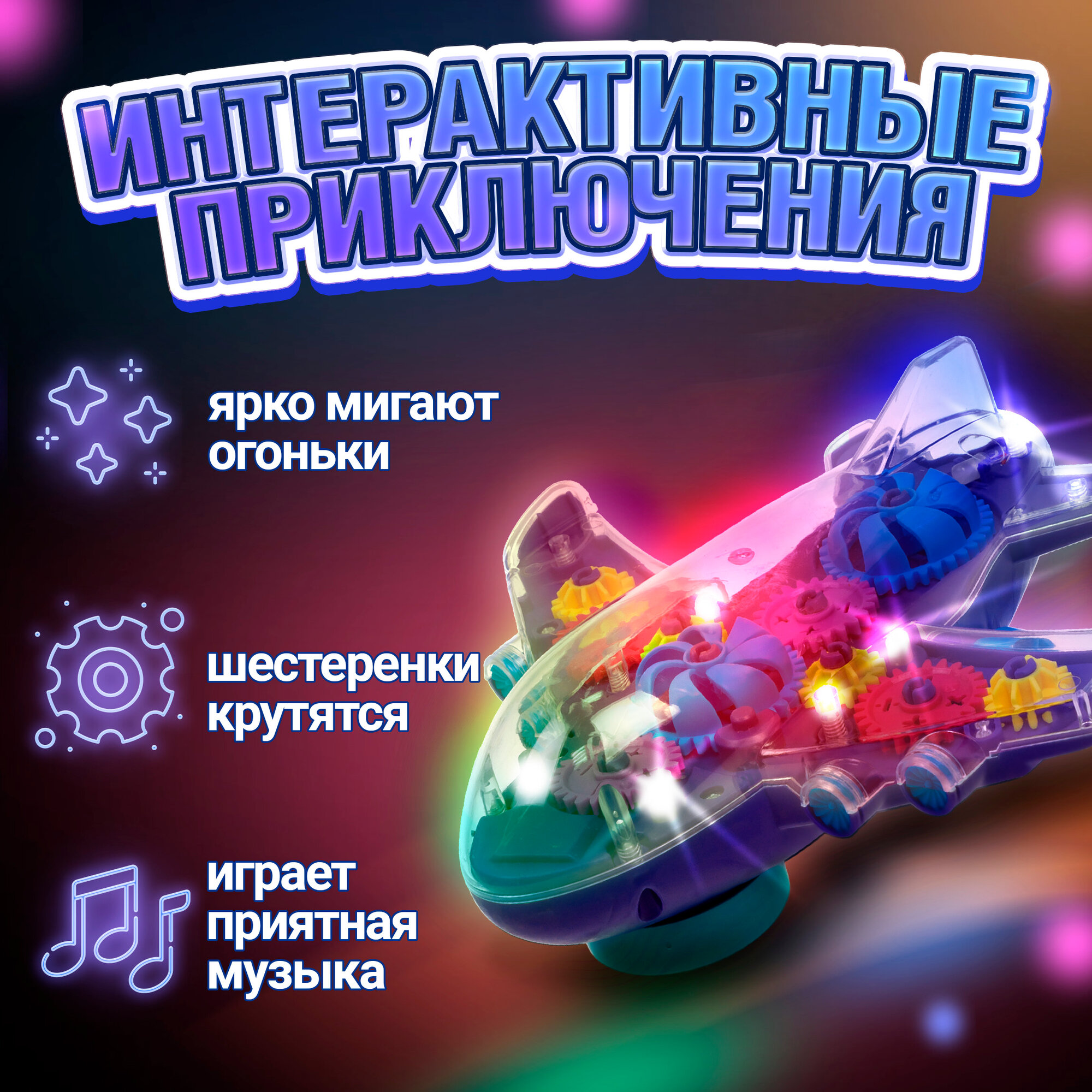 Купить Самолет 1toy Движок с прозрач. с механизмом на батарейках в ассортименте 1шт