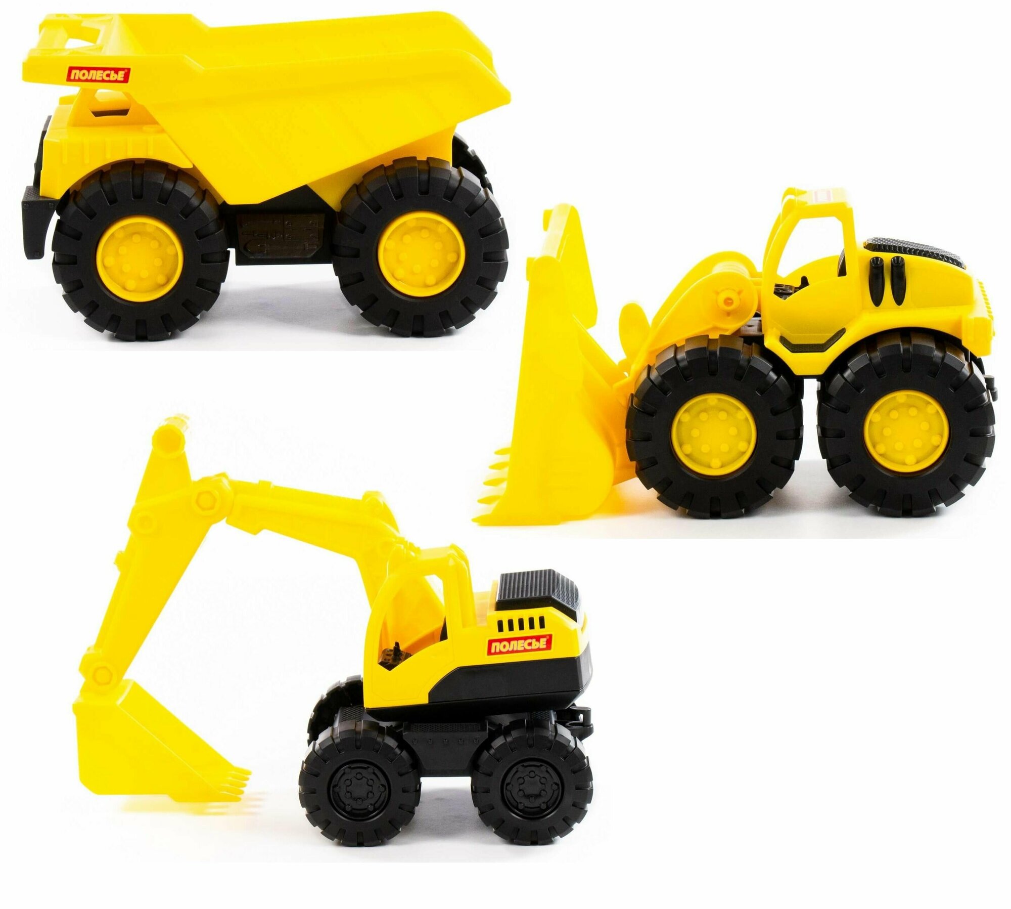 Набор 3-х машин "Строительная техника" для песочницы 26 см / Полесье / самосвал, трактор бульдозер колесный, экскаватор интересное:
