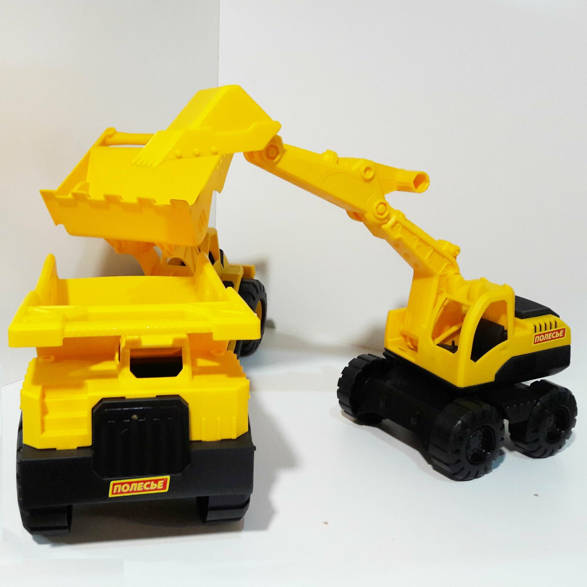 Набор 2-х машин "Строительная техника" для песочницы 26 см / Полесье / самосвал, трактор бульдозер колесный