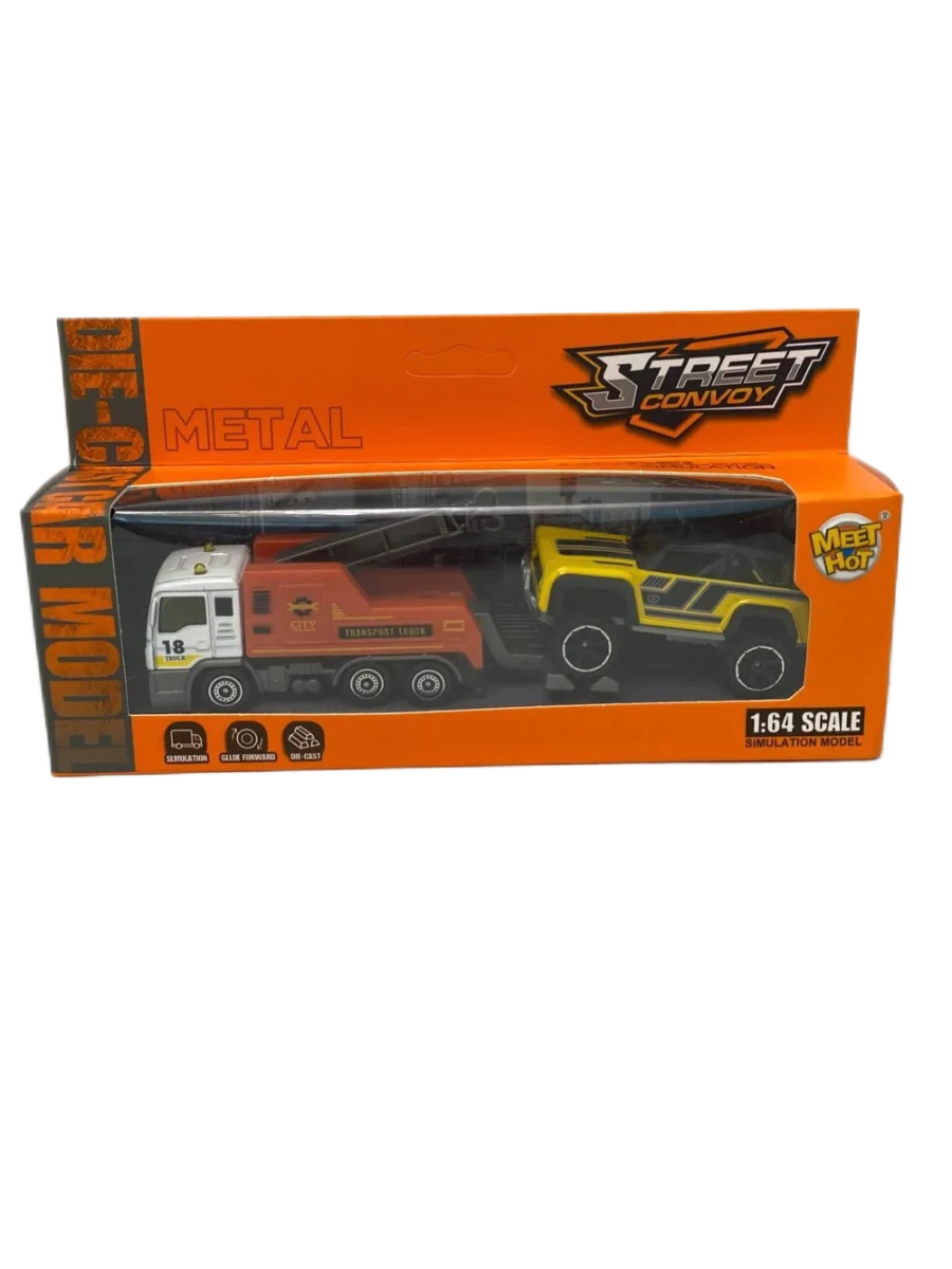 Эвакуатор с машинкой, спецтехника, для детей 3-9 лет, 2 шт, 1:64
