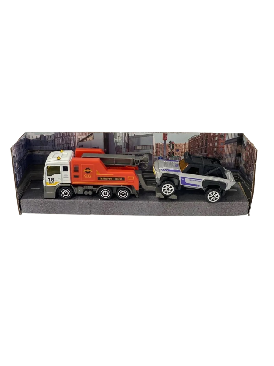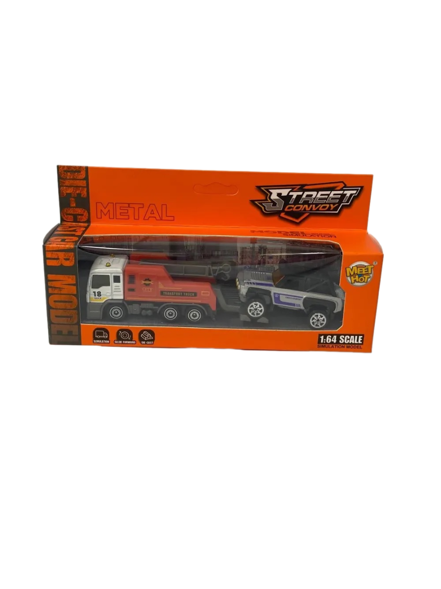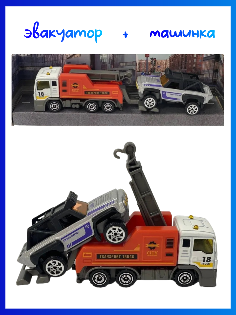 Эвакуатор с машинкой, спецтехника, для детей 3-9 лет, 2 шт, 1:64