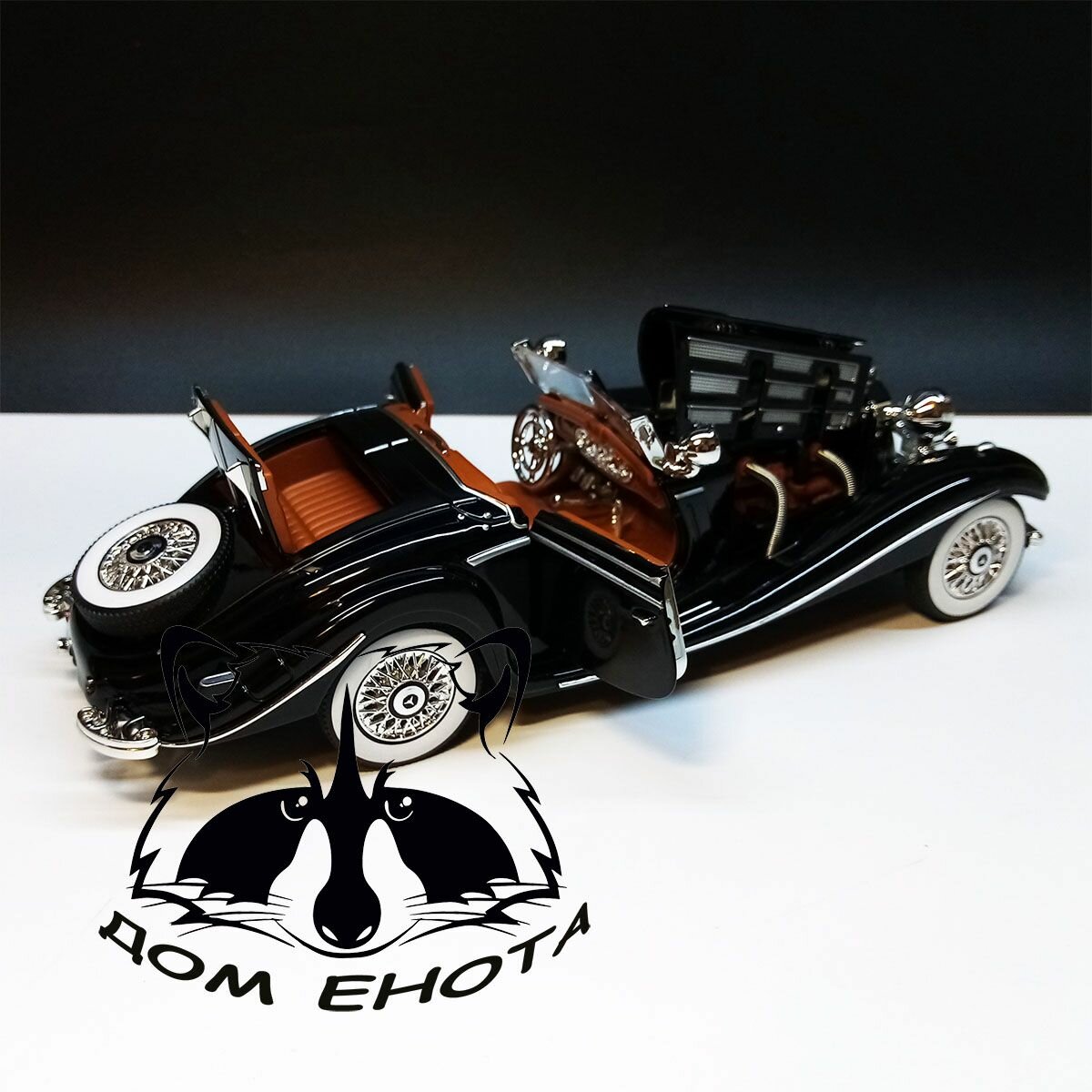 Машинка Мерседес 500К ретро с дымом. Металлическая модель автомобиля Mercedes 500K черный 22см. классическая модель. Инерционная игрушка машина 1:24 интересное: