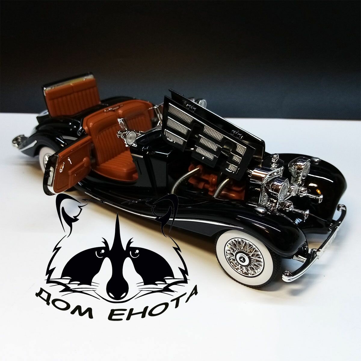 Купить Машинка Мерседес 500К ретро с дымом. Металлическая модель автомобиля Mercedes 500K черный 22см. классическая модель. Инерционная игрушка машина 1:24