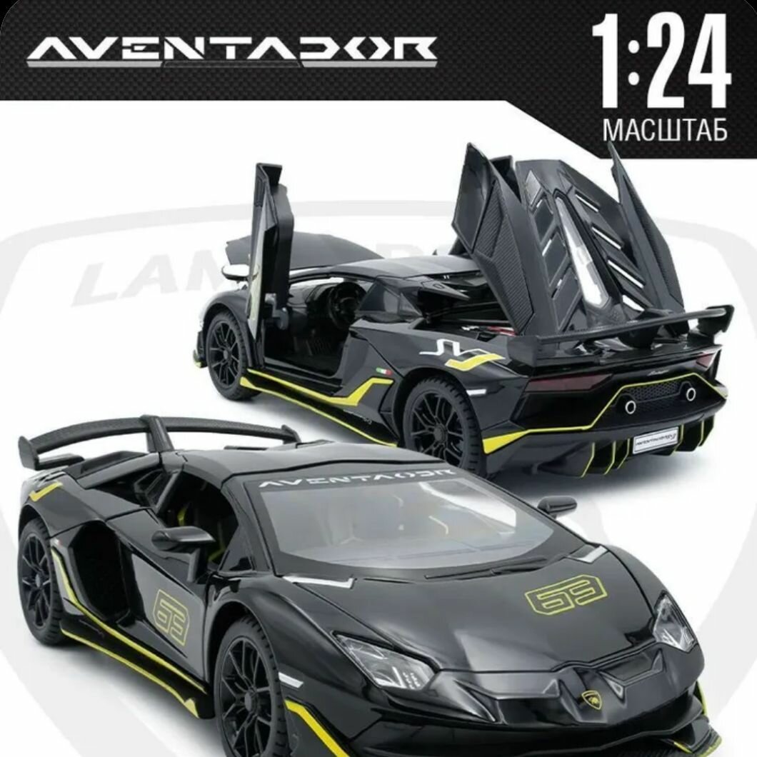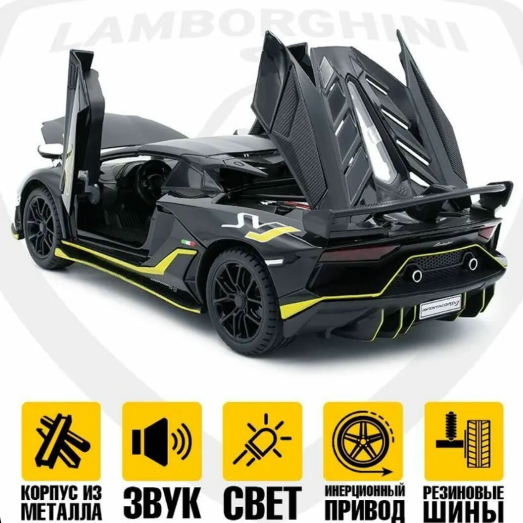 Машинка Lamborghini Aventador со съемной крышей 1:24, металлическая, свет, звук подарок для мальчика интересное: