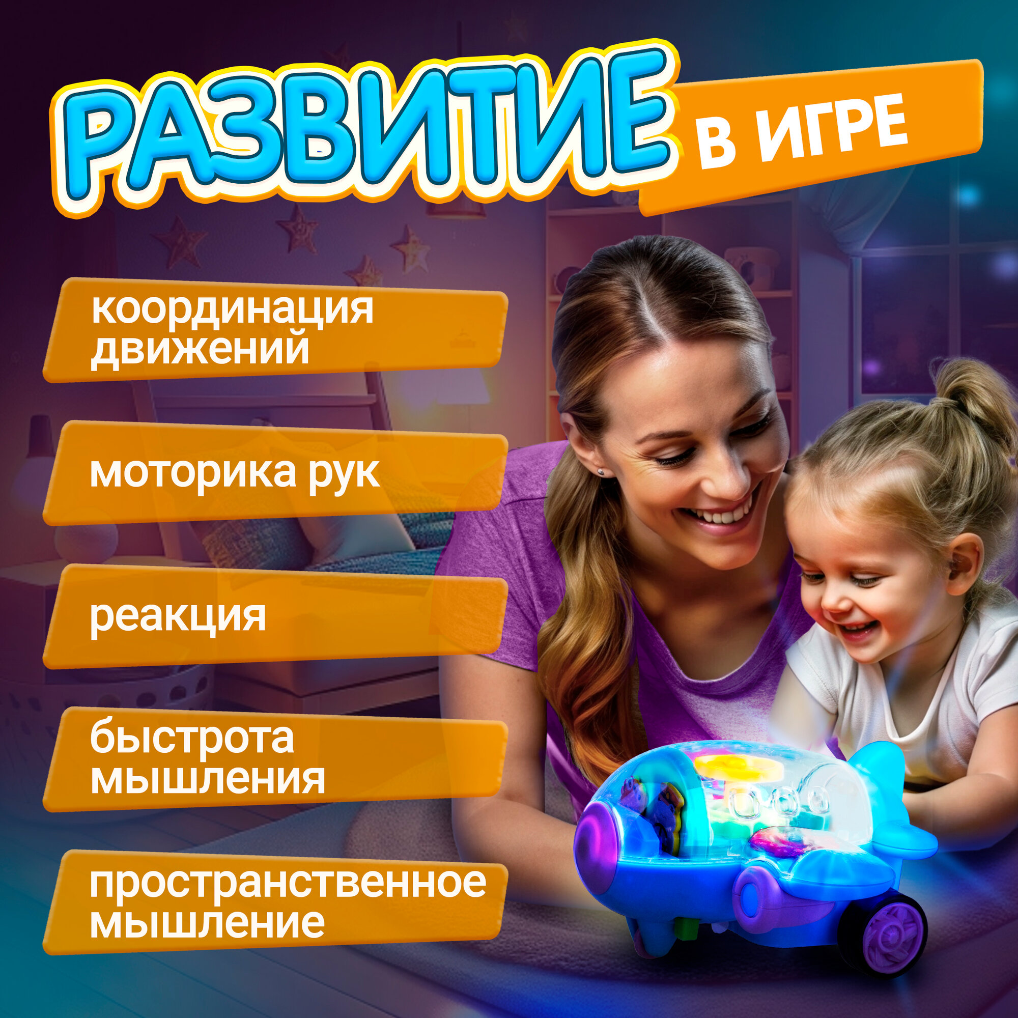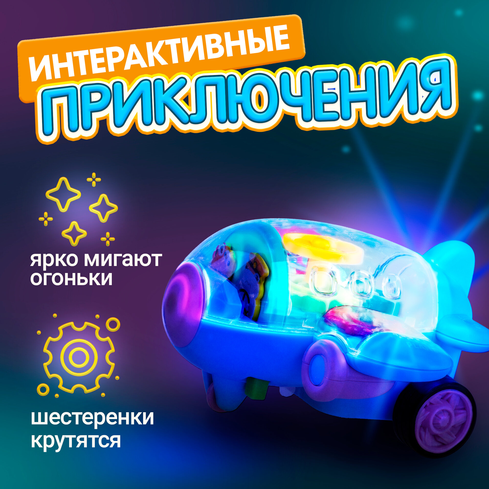 Самолет 1toy Движок с прозрач. механизмом, фрикц, свет, голубой интересное: