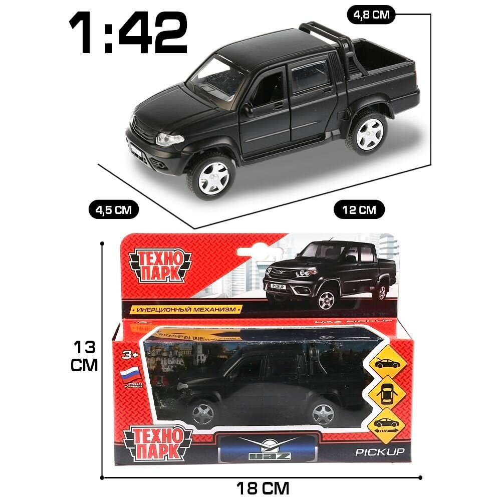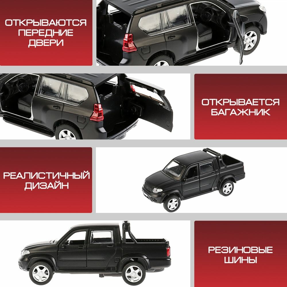 Купить Машинка детская УАЗ Пикап 12 см, Технопарк, черная, открываются двери и багажник, металлический корпус
