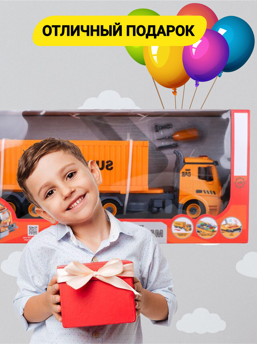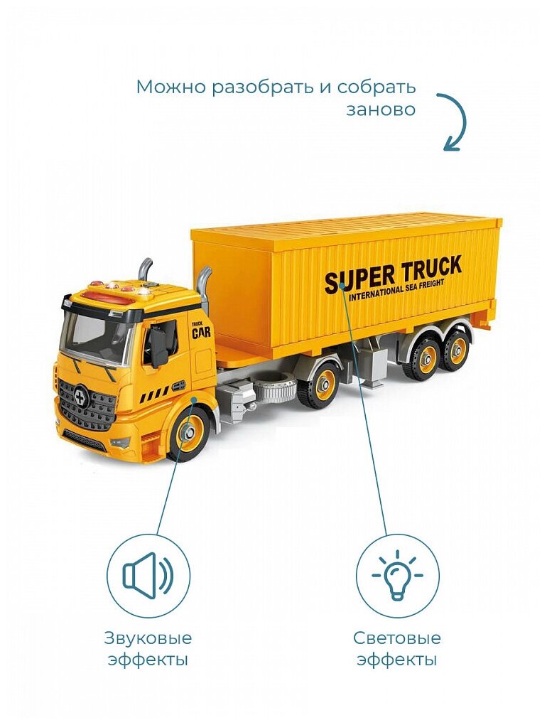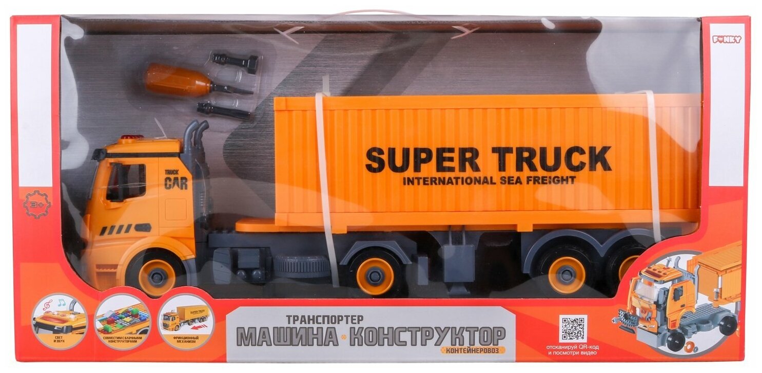 Машинка конструктор Контейнеровоз, Funky Toys, фрикционный, звук, свет, 1:12 интересное: