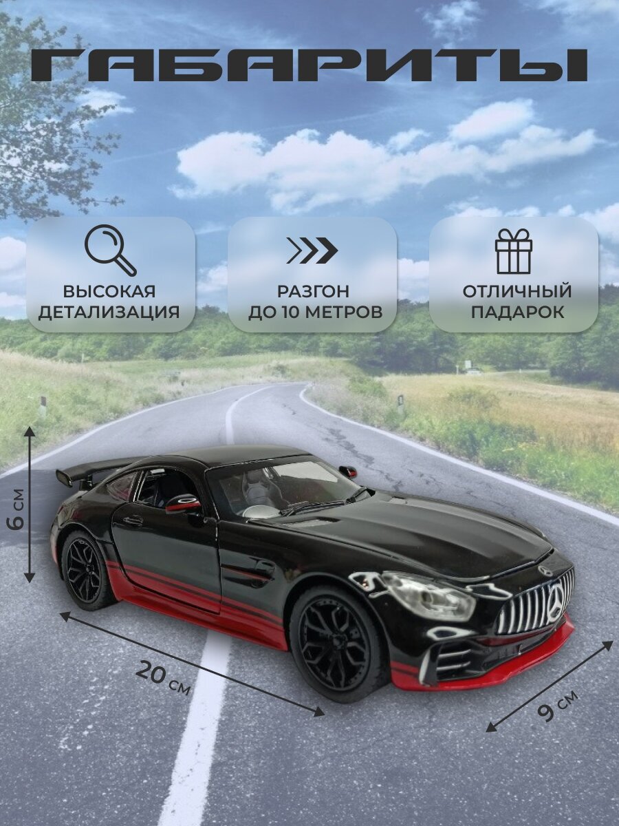 Купить Модель автомобиля Merсedes AMG GT с дымом коллекционная металлическая игрушка масштаб 1:24 черно-красный