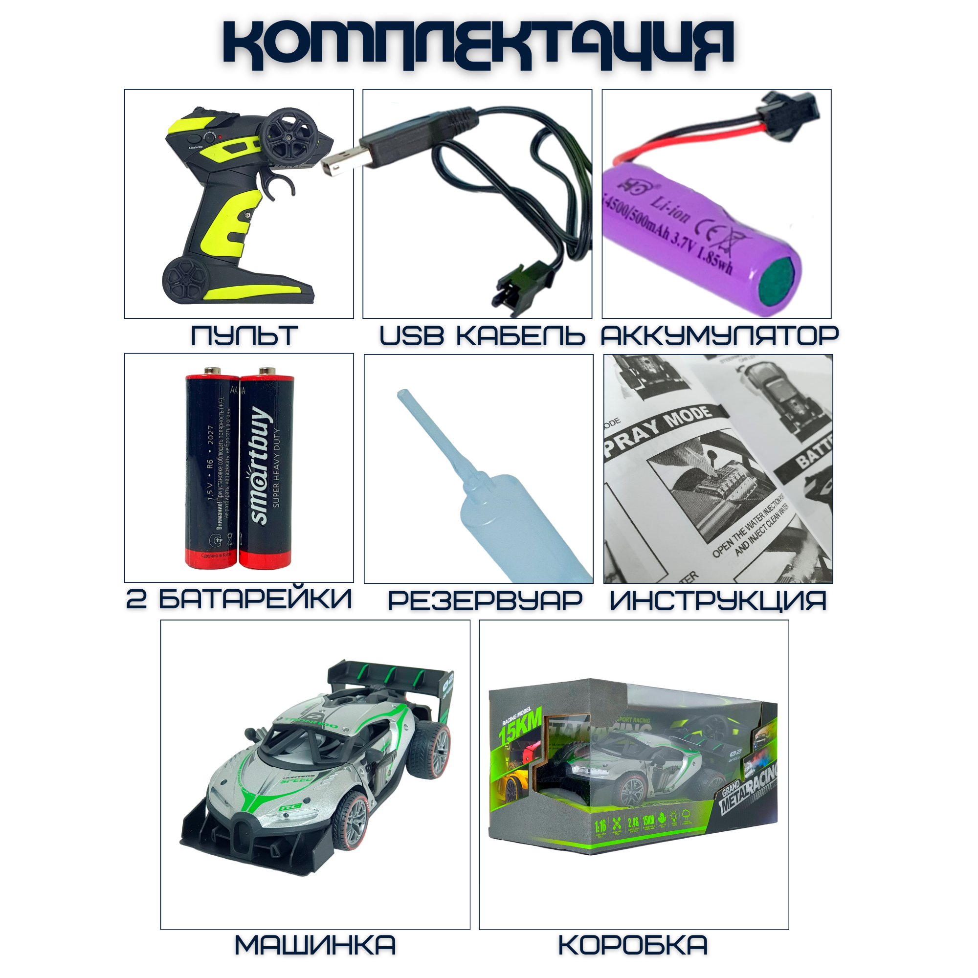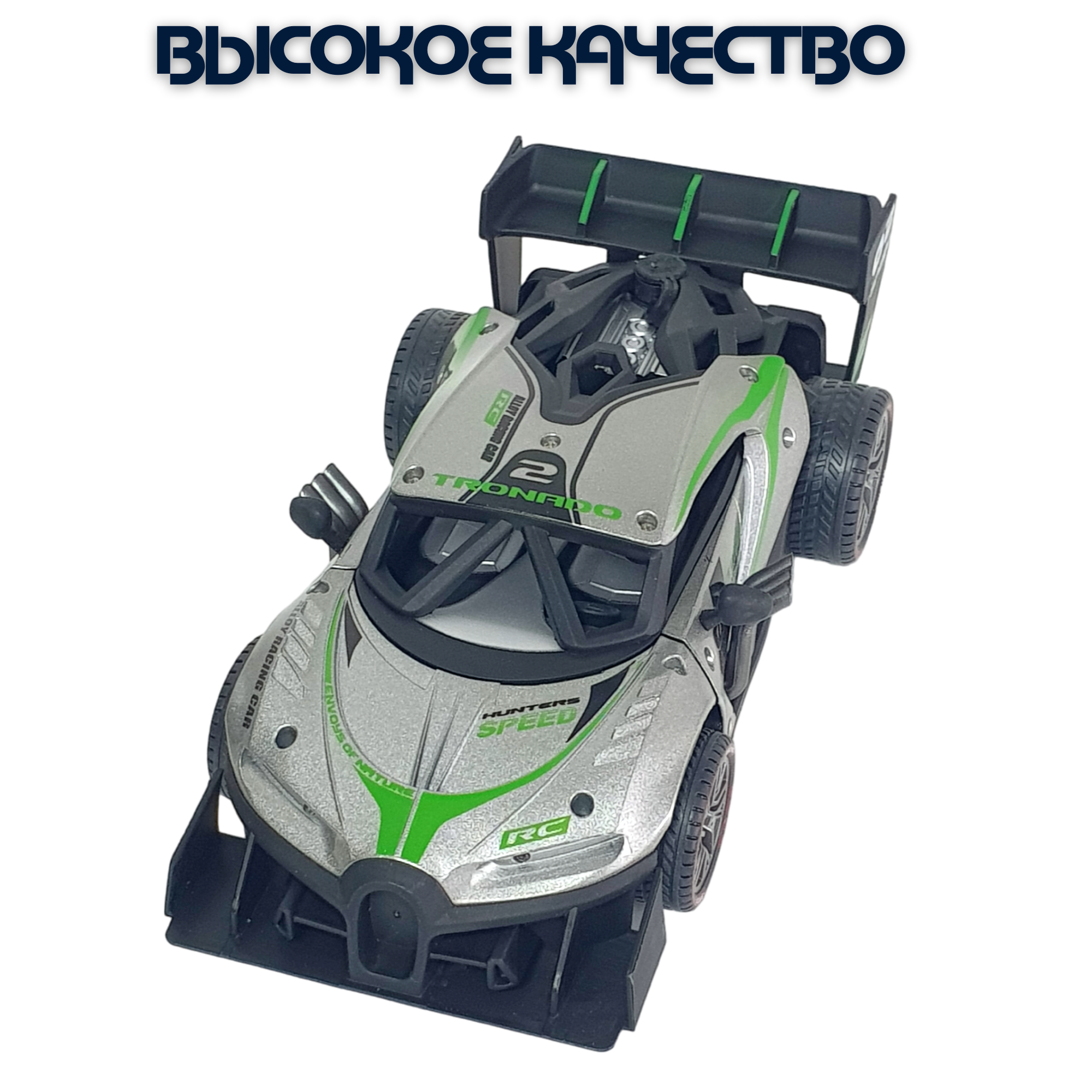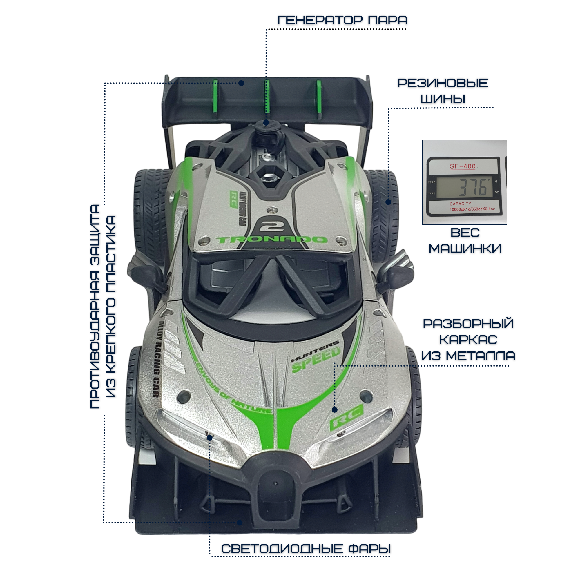Купить Машинка на радиоуправлении c металлическим каркасом и эффектом дыма серебристо-зеленая
