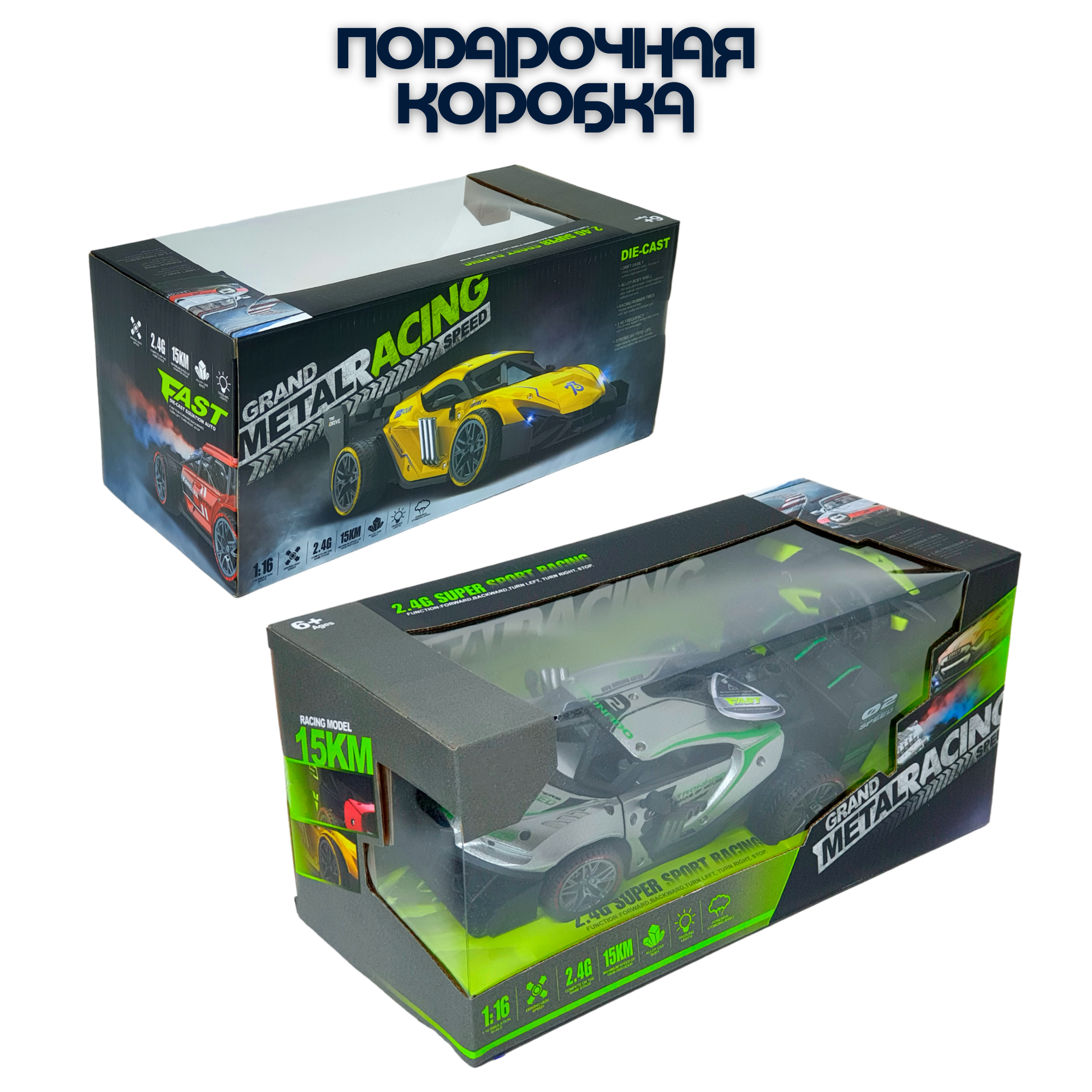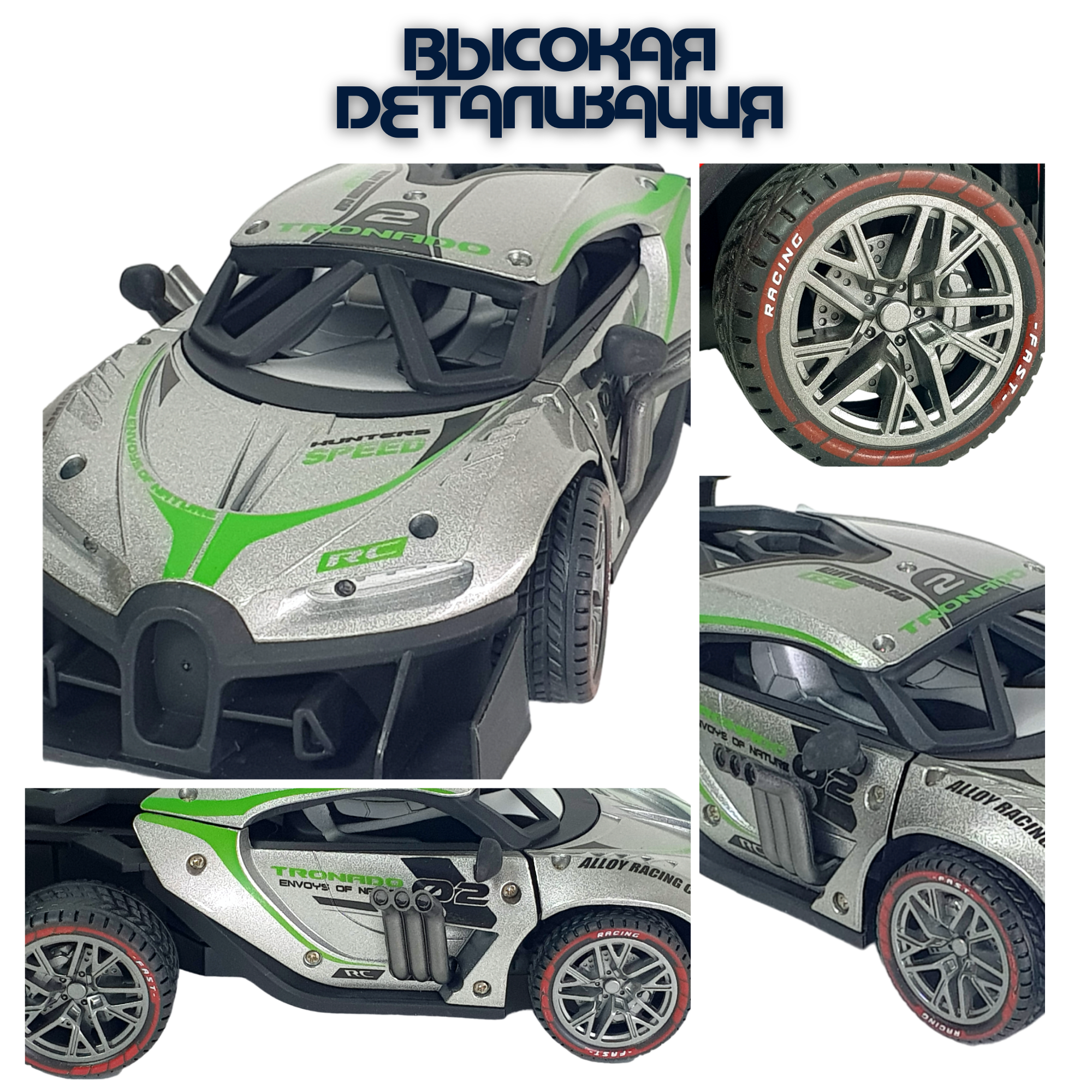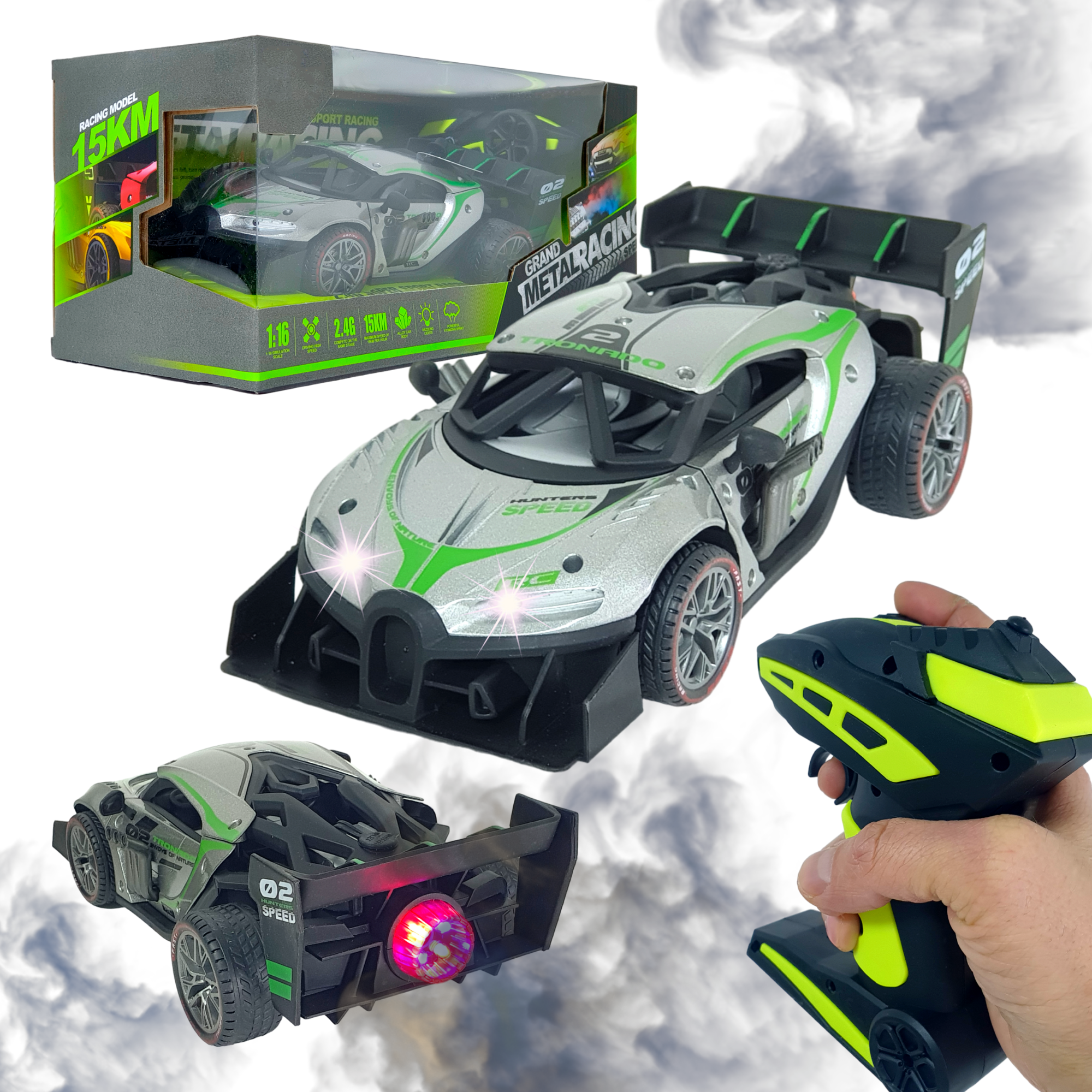 Купить Машинка на радиоуправлении c металлическим каркасом и эффектом дыма серебристо-зеленая
