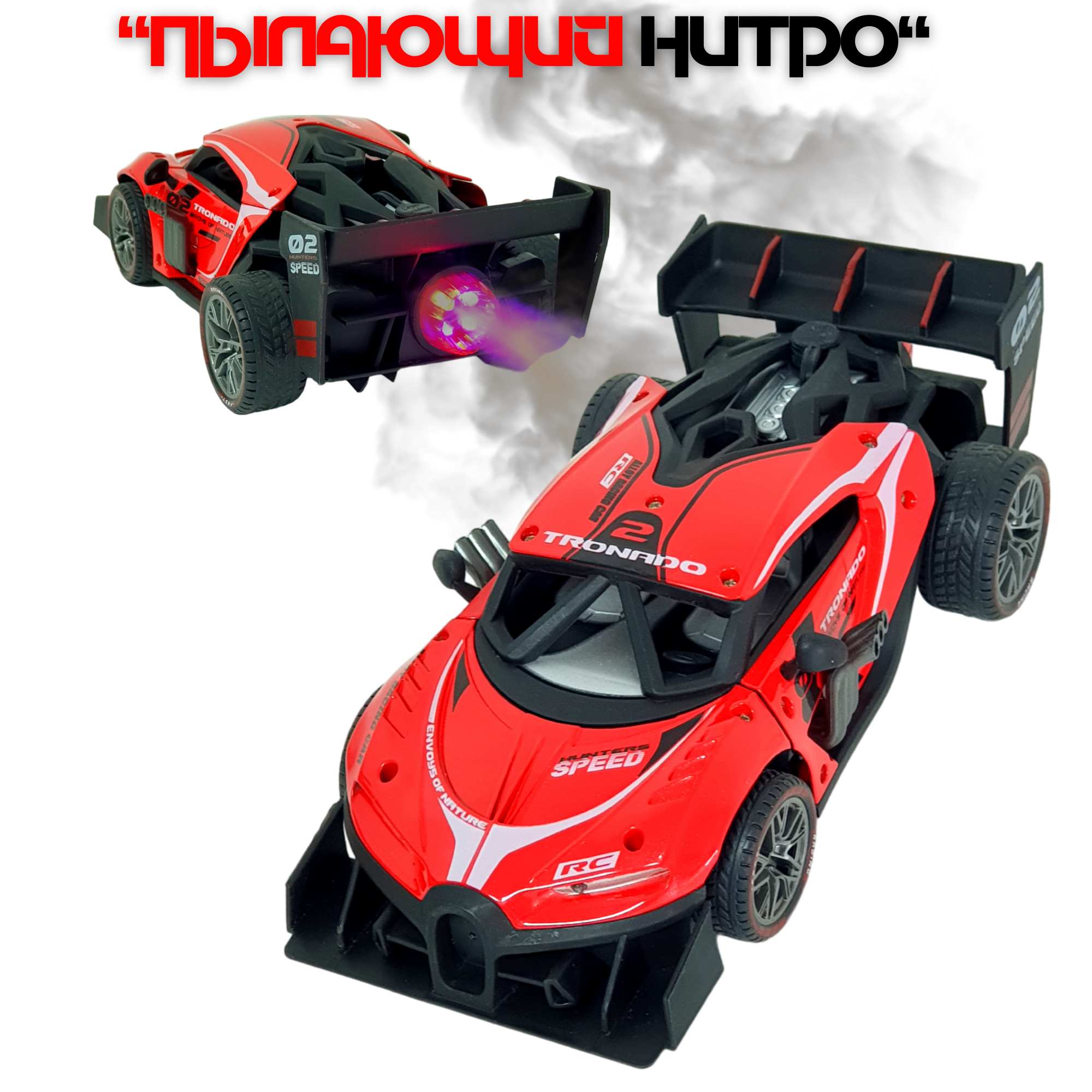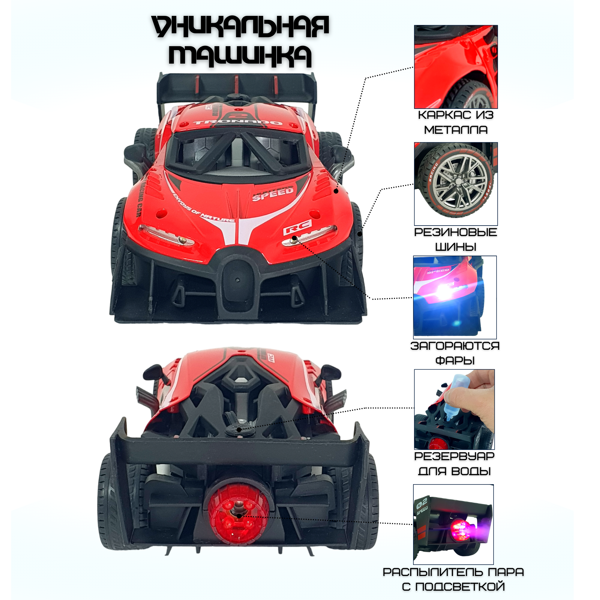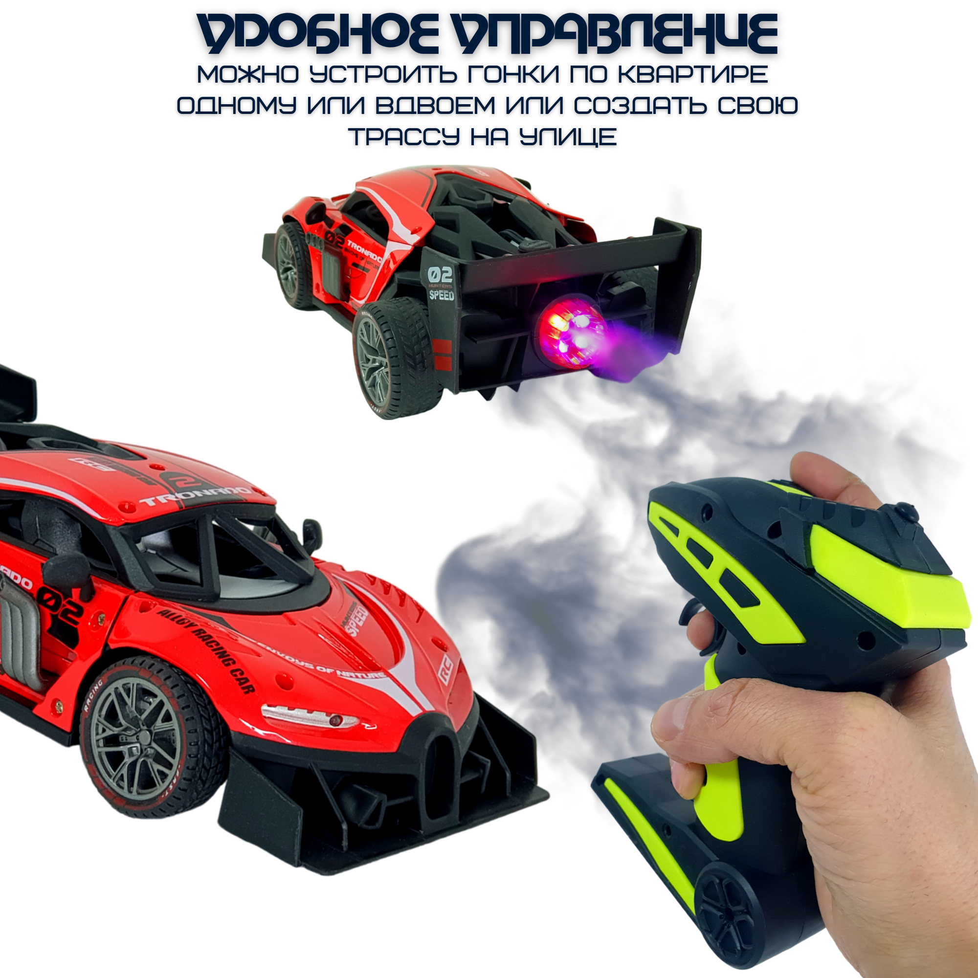 Машинка на радиоуправлении c металлическим каркасом и эффектом дыма красная