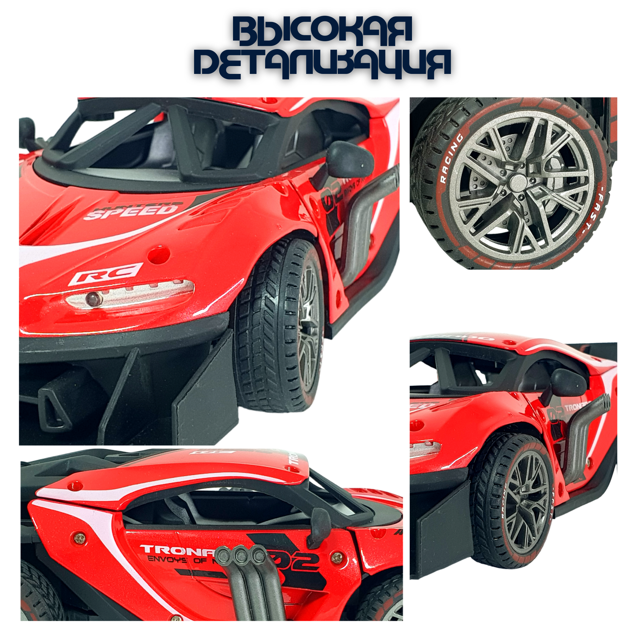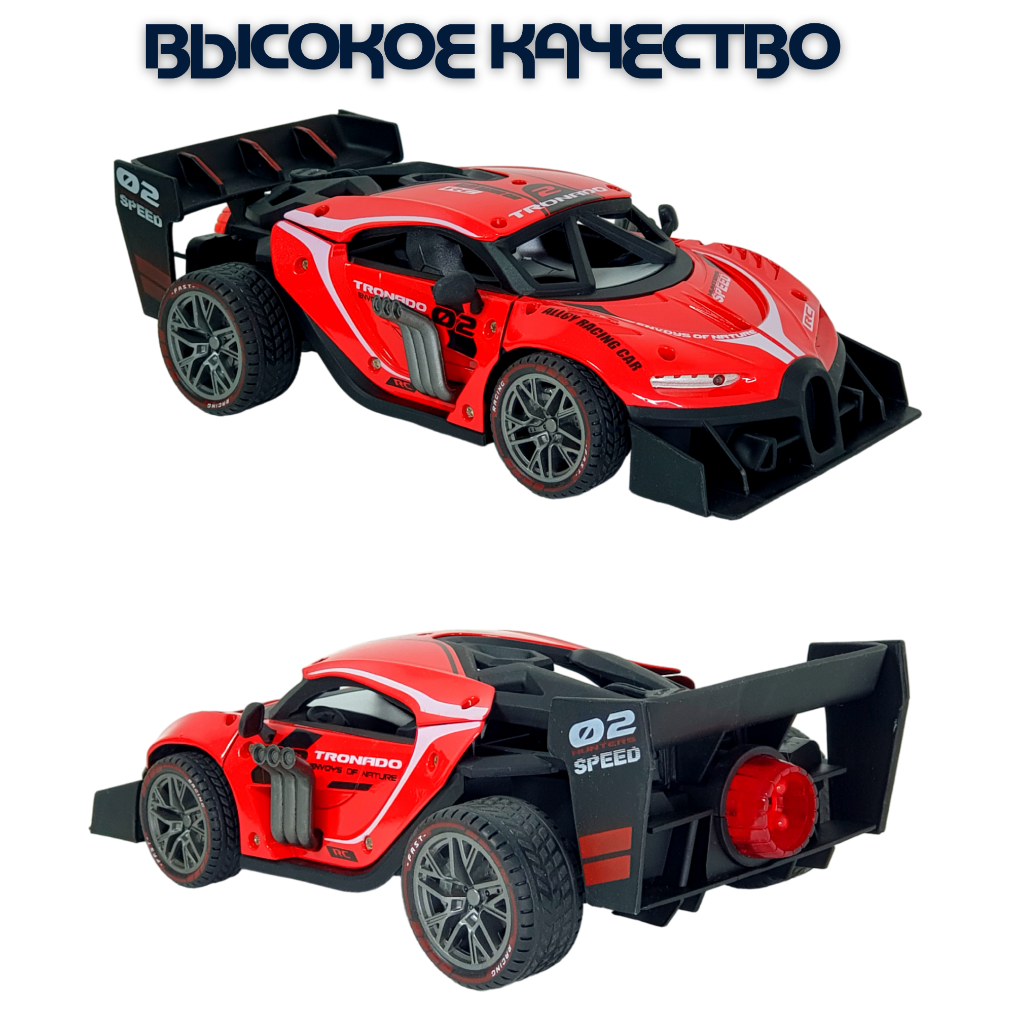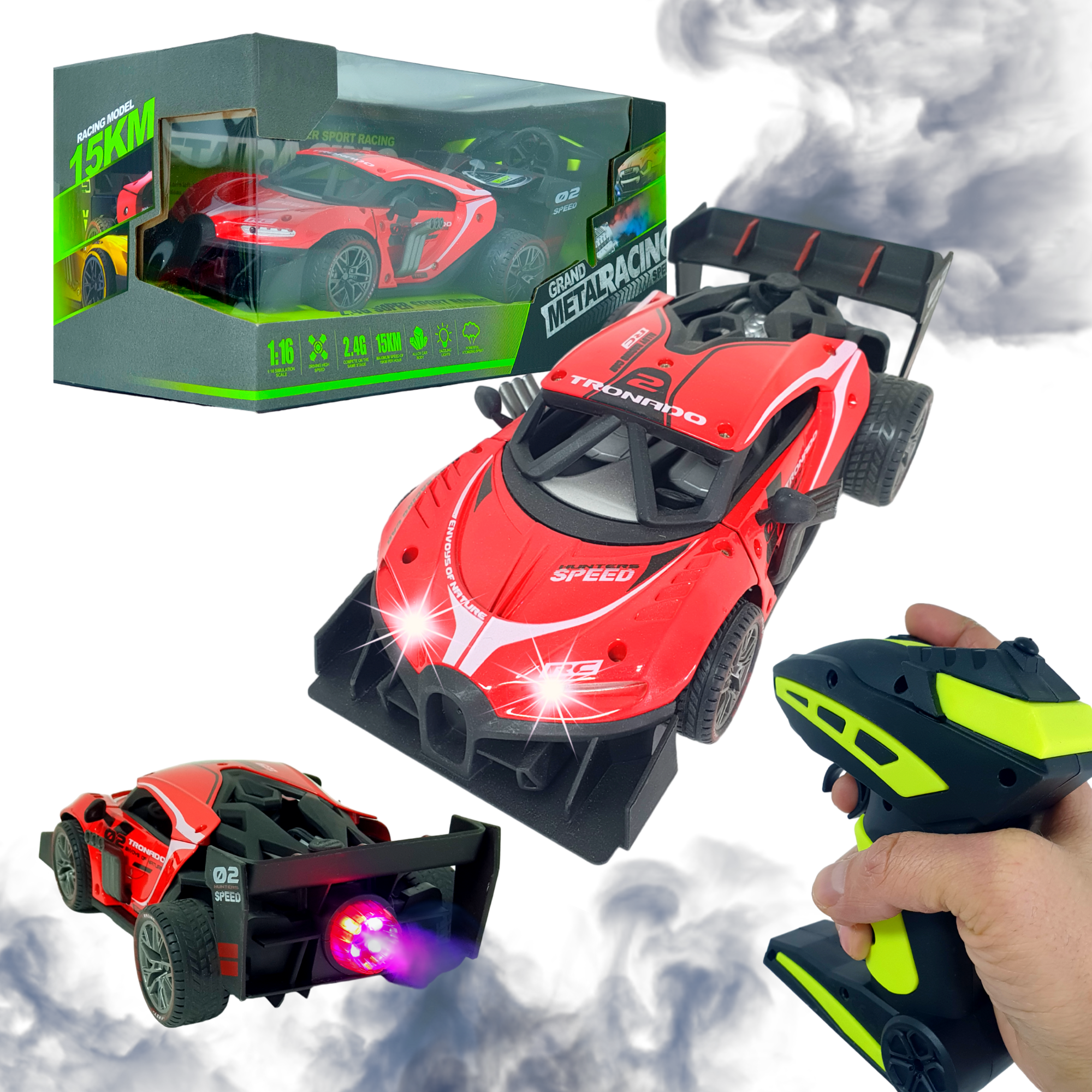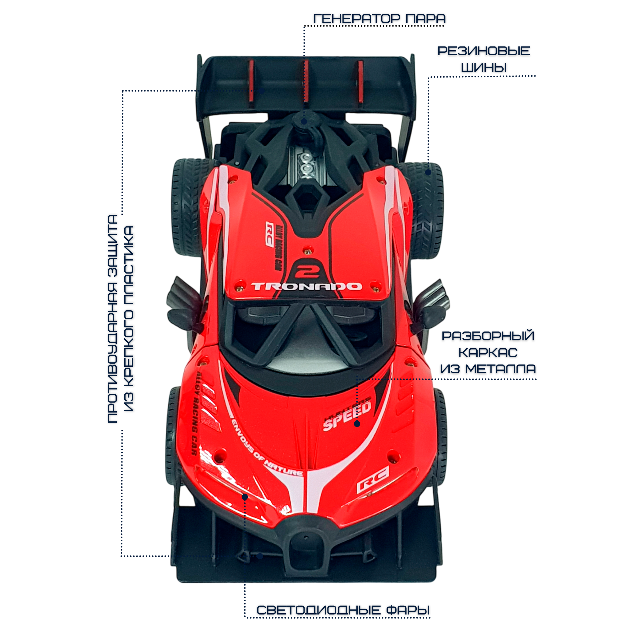 Машинка на радиоуправлении c металлическим каркасом и эффектом дыма красная