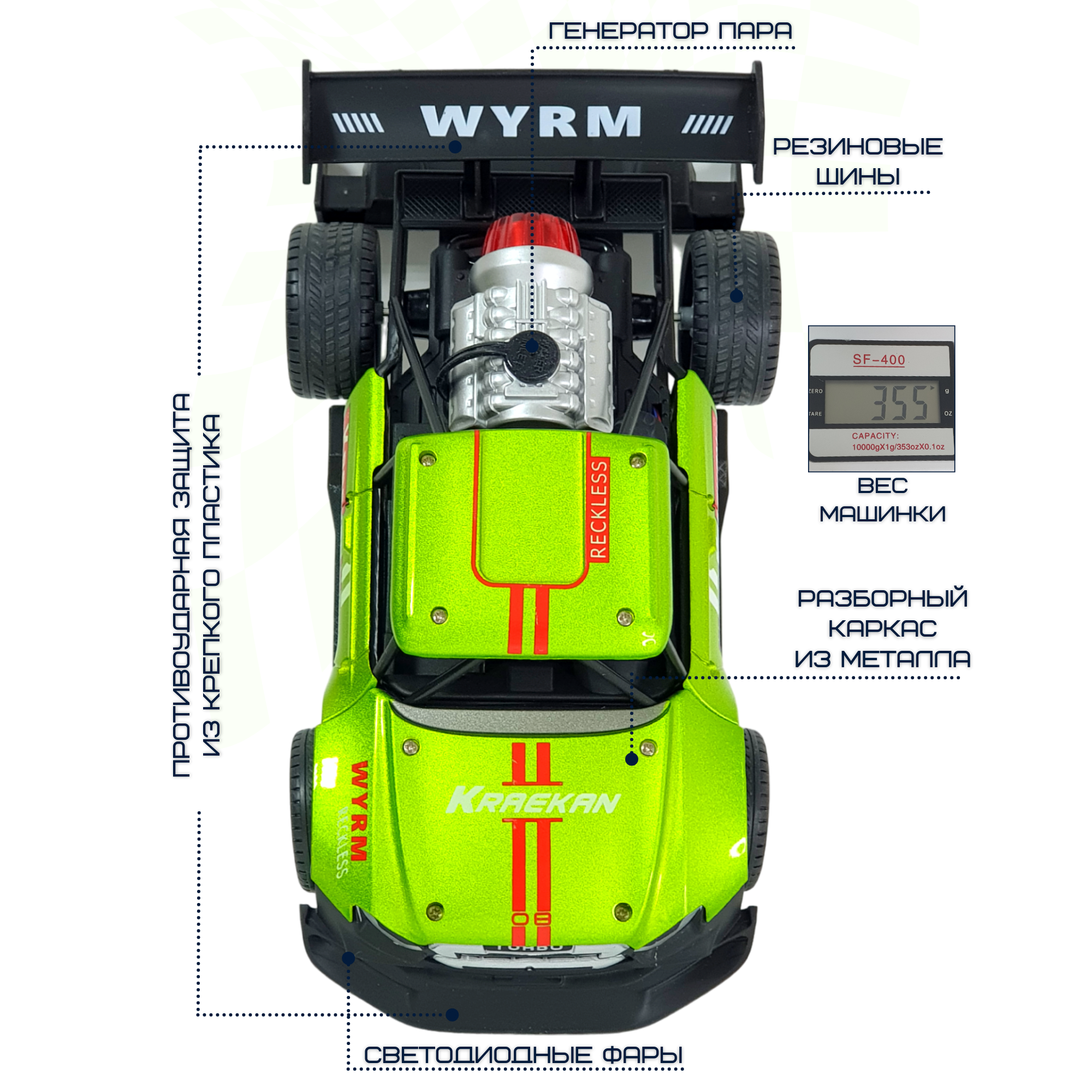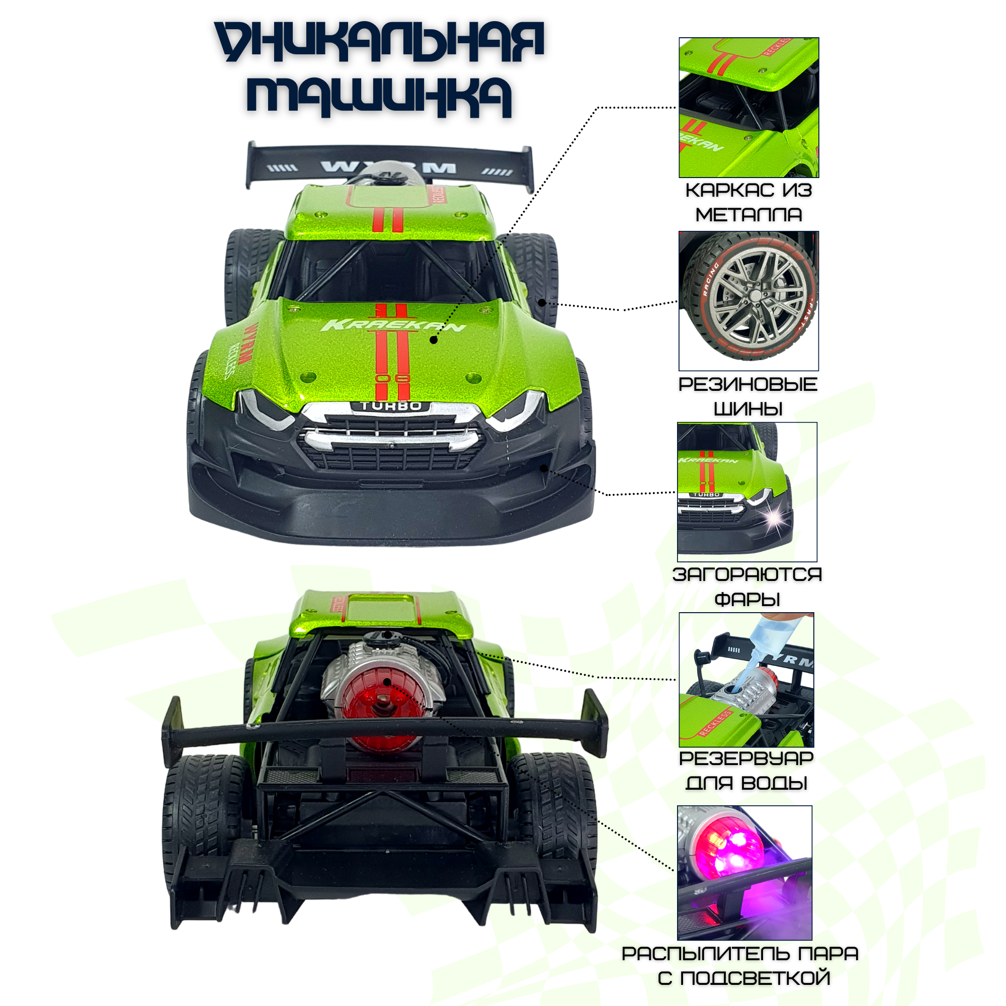 СохранитьМашинка на радиоуправлении c металлическим каркасом и эффектом дыма светло-зеленая интересное: