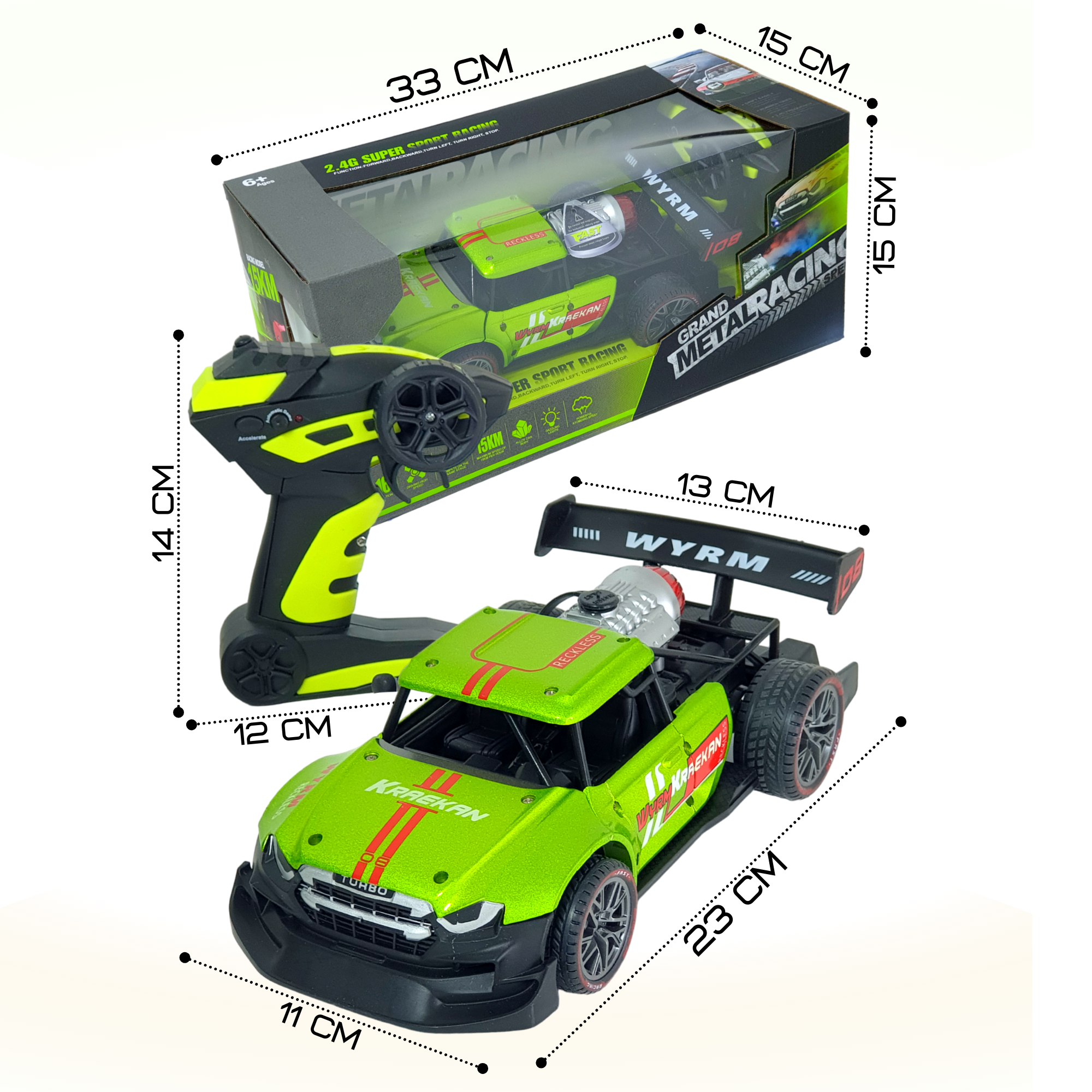 Машинка на радиоуправлении c металлическим каркасом и эффектом дыма темно-зеленая