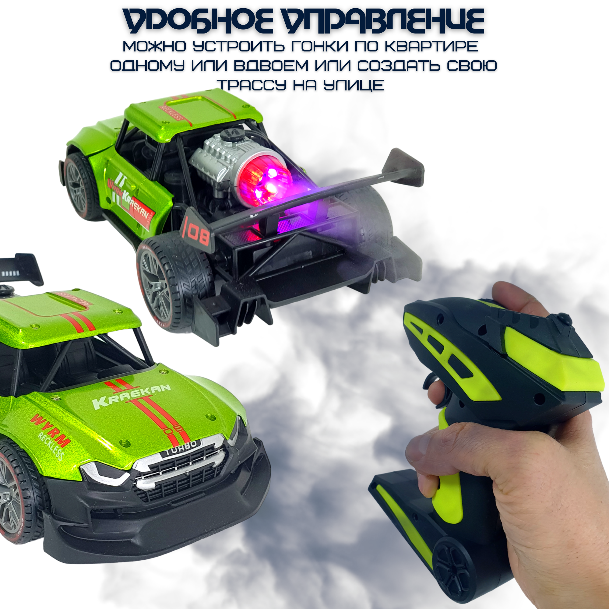 Купить Машинка на радиоуправлении c металлическим каркасом и эффектом дыма светло-зеленая