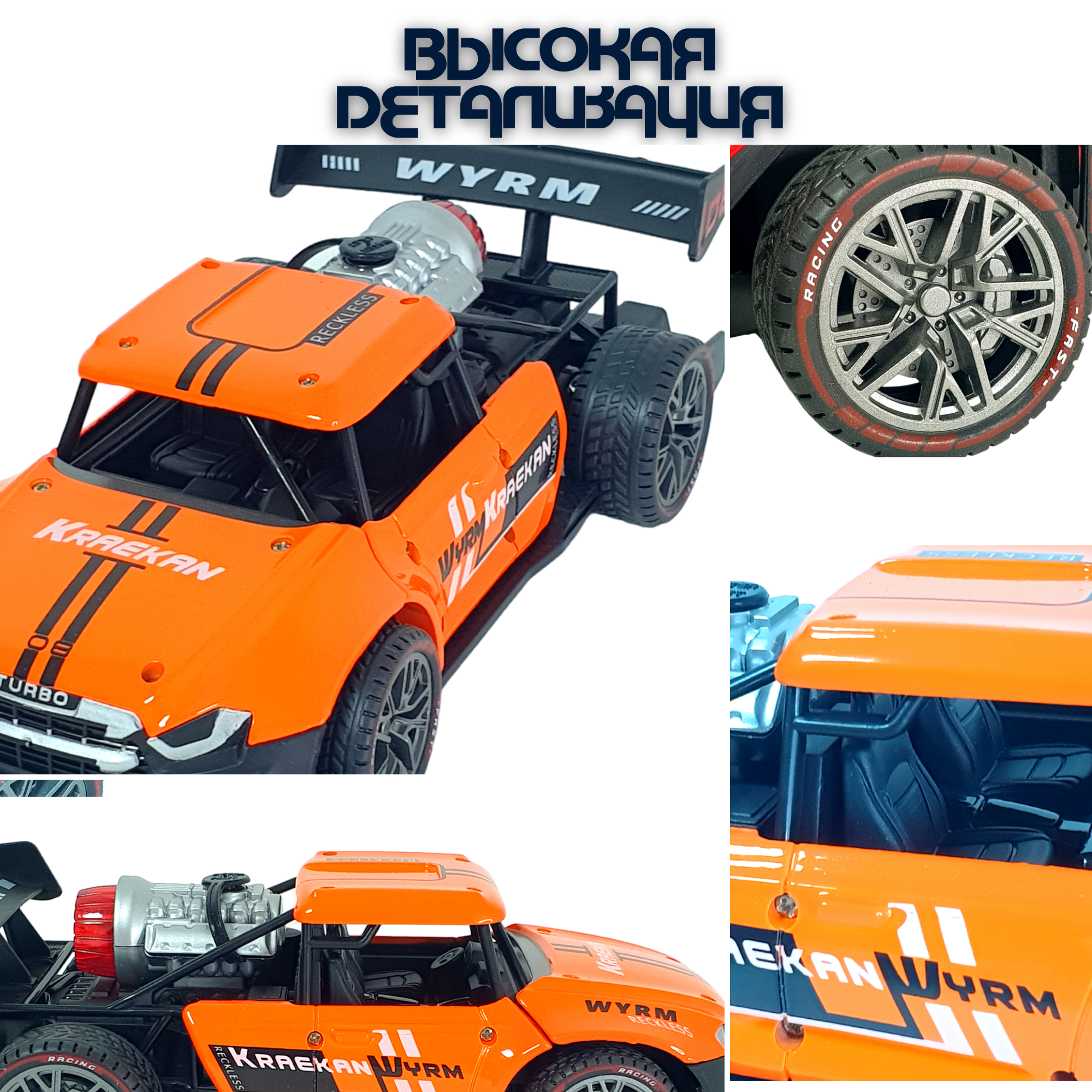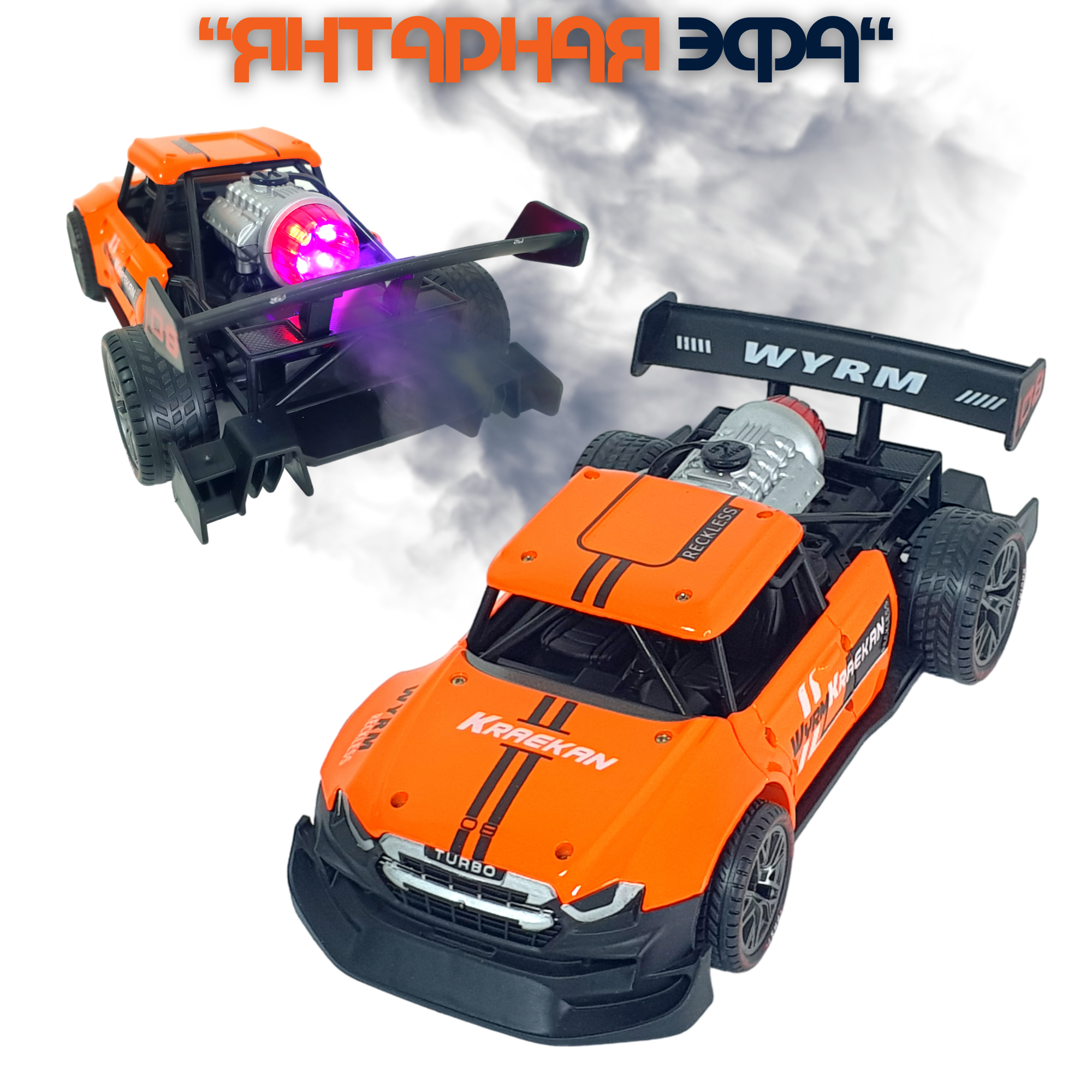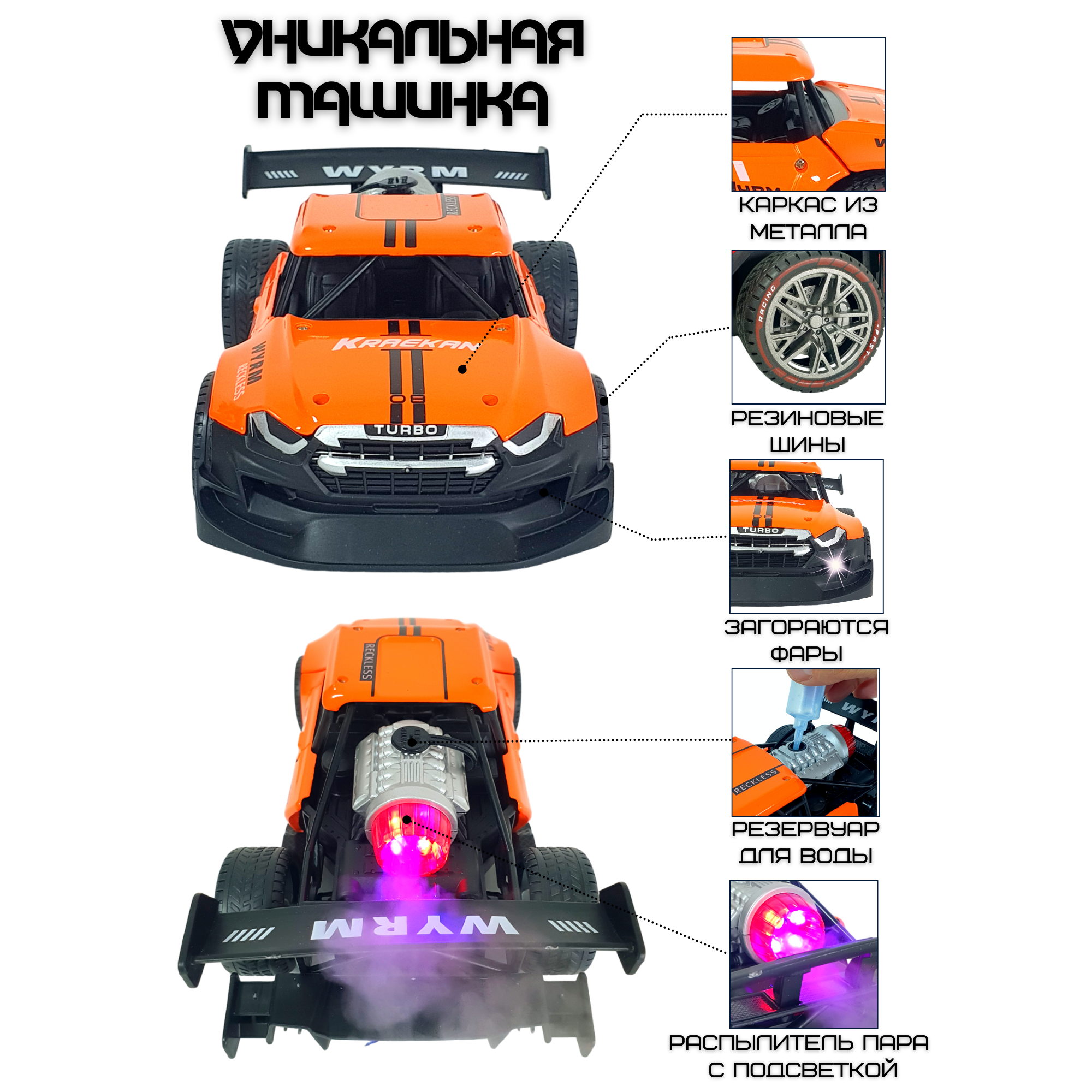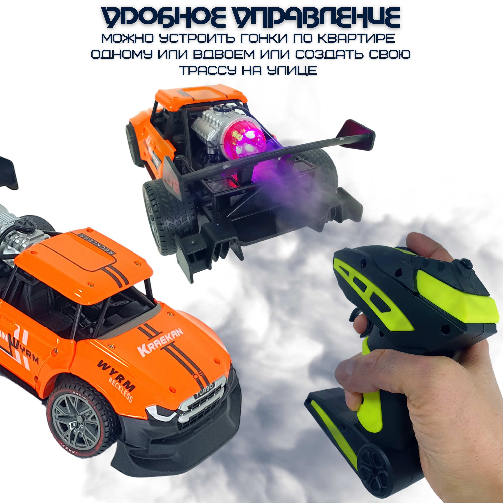 Купить Машинка на радиоуправлении c металлическим каркасом и эффектом дыма оранжевая