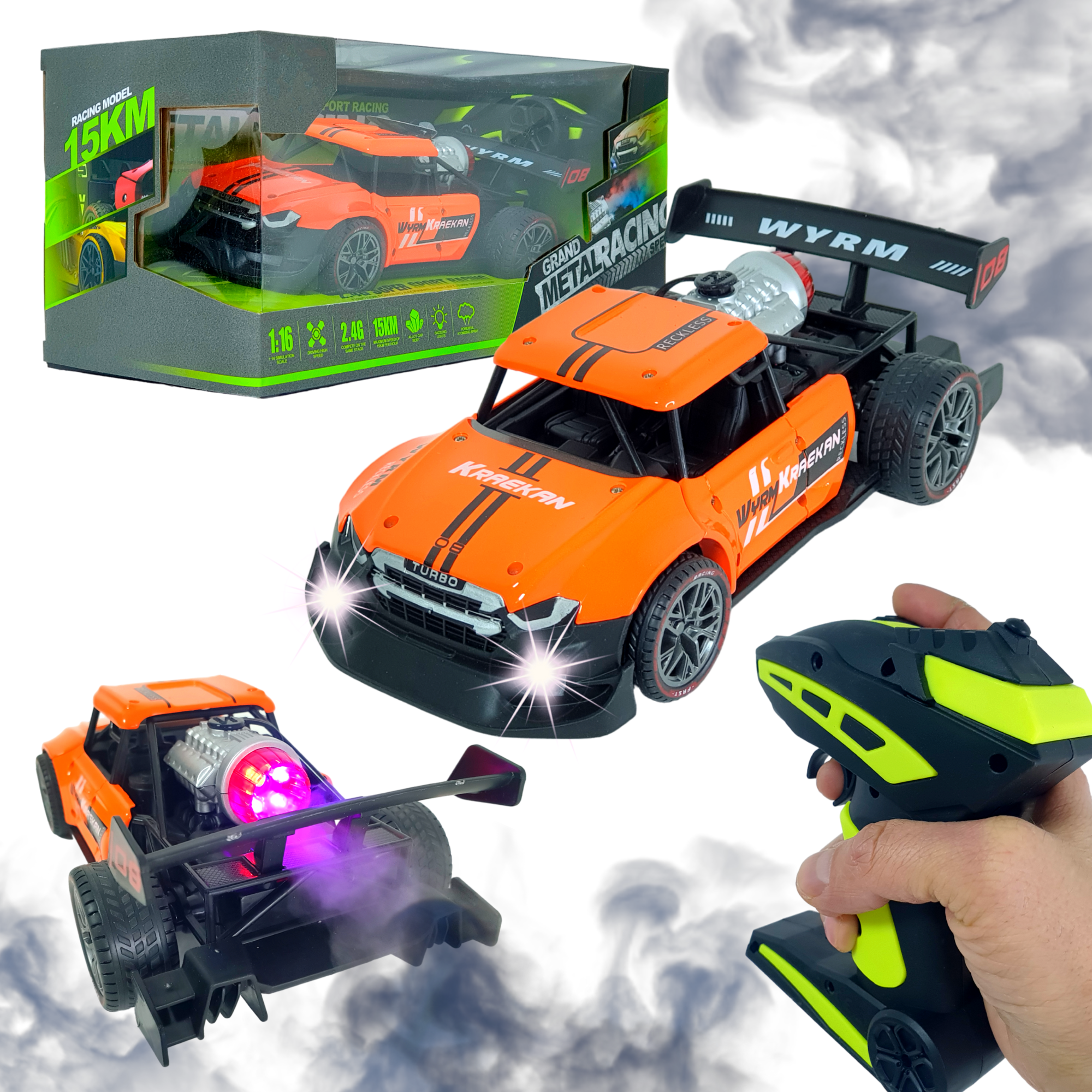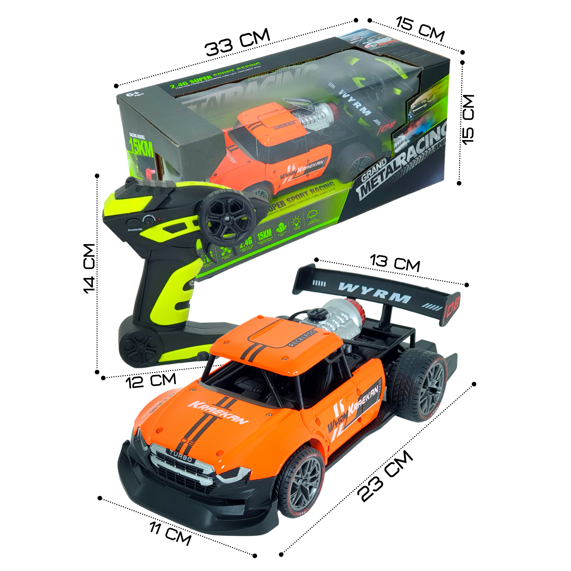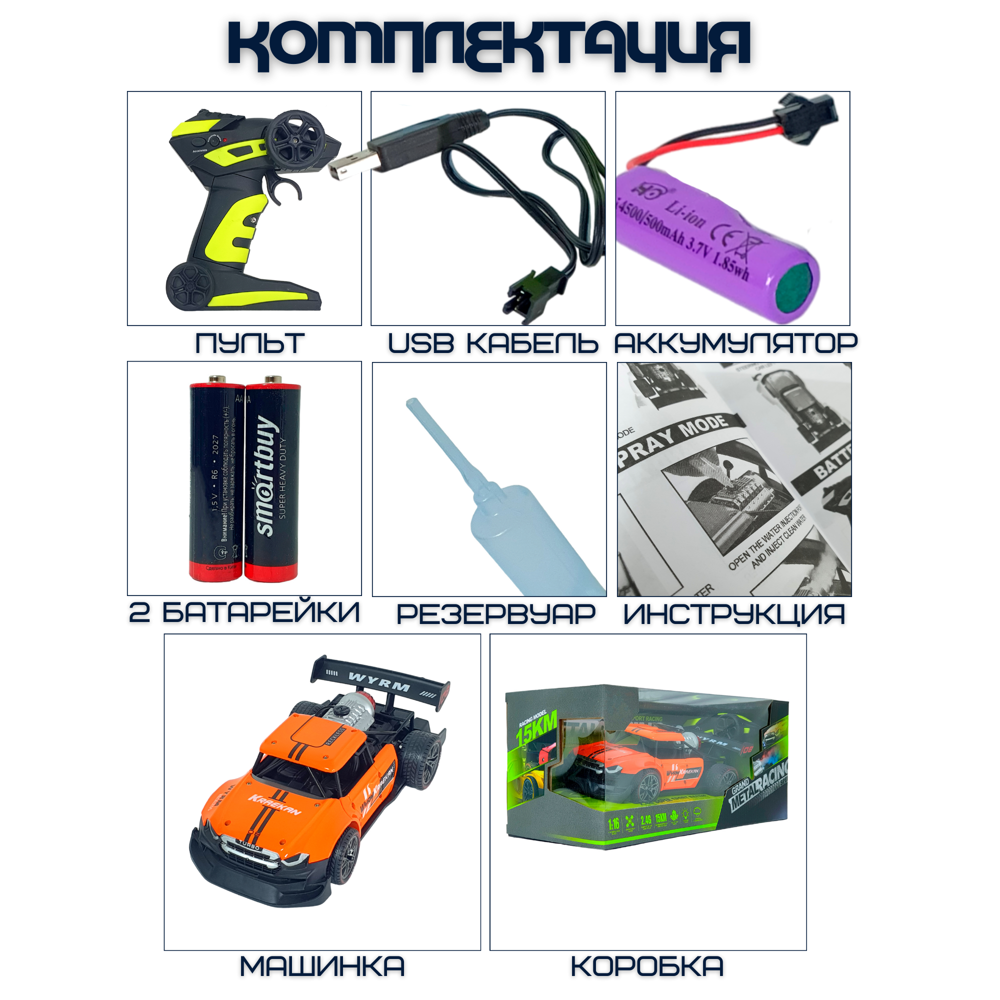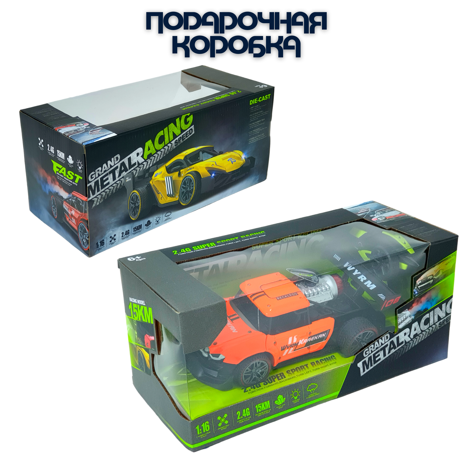 Купить Машинка на радиоуправлении c металлическим каркасом и эффектом дыма оранжевая