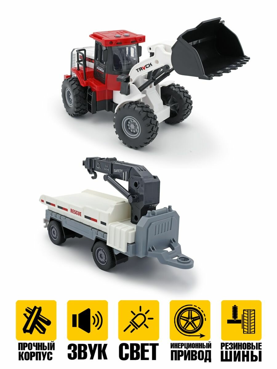 Ниже Вы можете прочитать отзывы на Погрузчик трактор с ковшом и прицепом краном для грузов световые и звуковые эффекты, ознакомится с подробными характеристиками, посмотреть интересные обзоры и фотографии на Погрузчик трактор с ковшом и прицепом краном для грузов световые и звуковые эффекты.