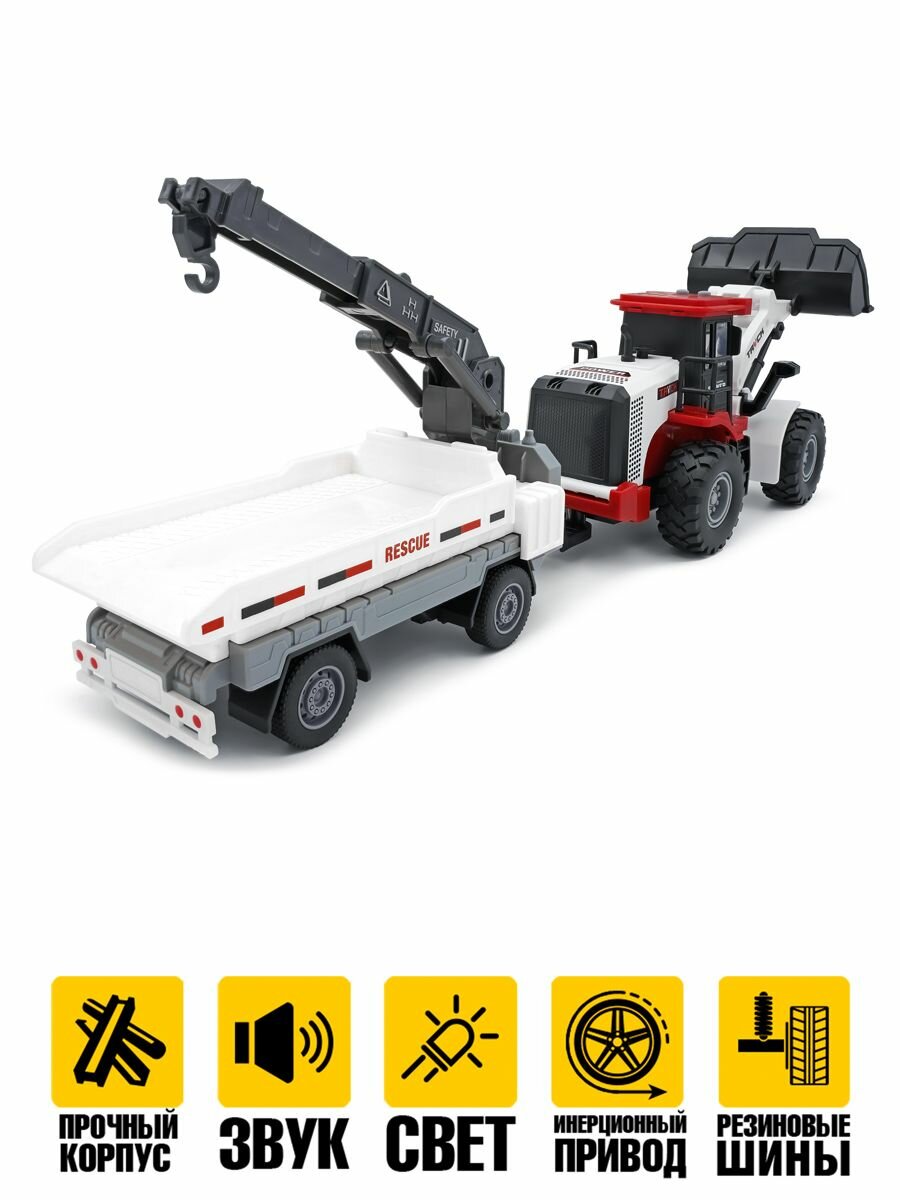 Большой Грейдер Трактор с прицепом краном для грузов свет звук инерционный привод
