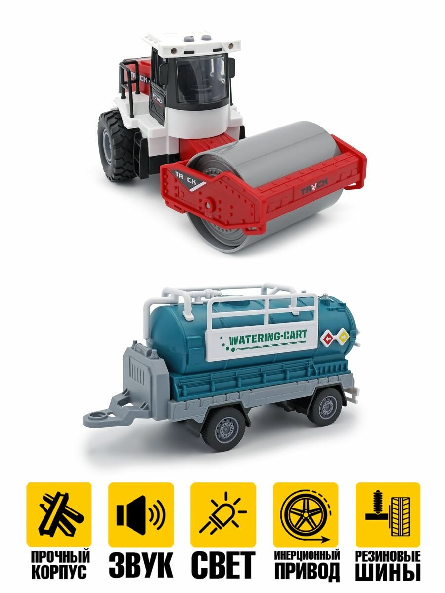 Дорожный каток асфальтоукладчик с прицепом цистерной водовоз свет звук инерционный привод