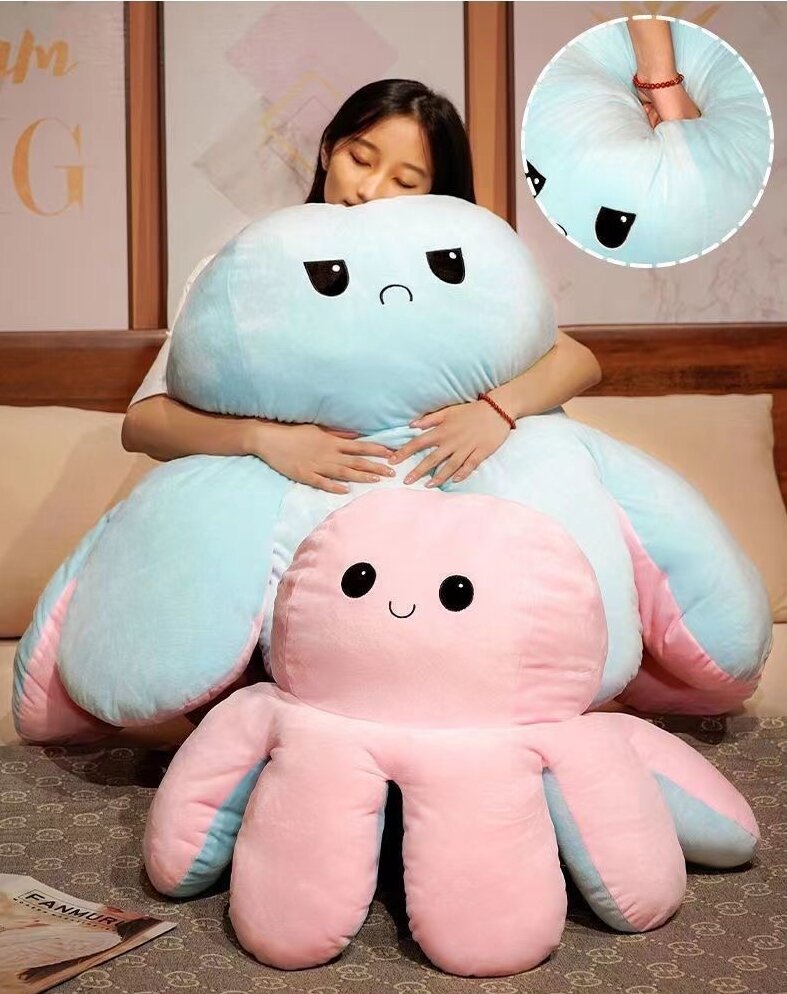 Купить Мягкая игрушка Осьминожка перевертыш, плюш, велюр, синтепон, 160 см, розово-голубой