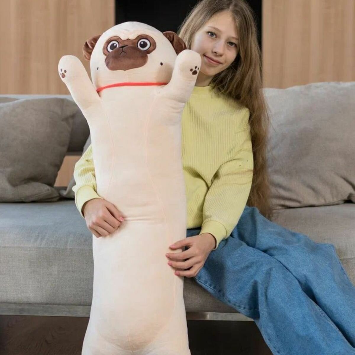 Мягкая игрушка КупиКота "Мопс Батон", текстиль, 110см, бежевая интересное: