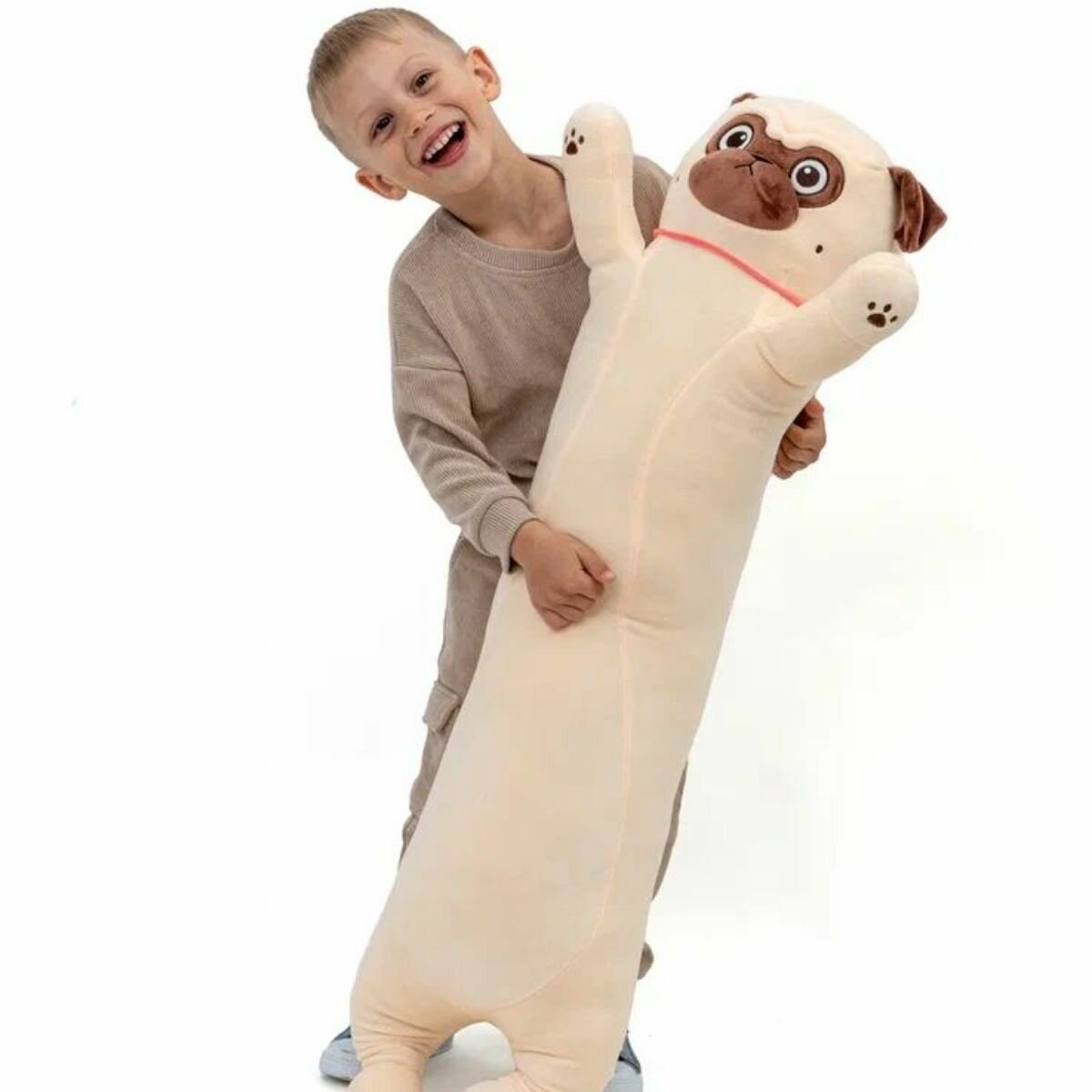 Купить Мягкая игрушка КупиКота "Мопс Батон", текстиль, 110см, бежевая