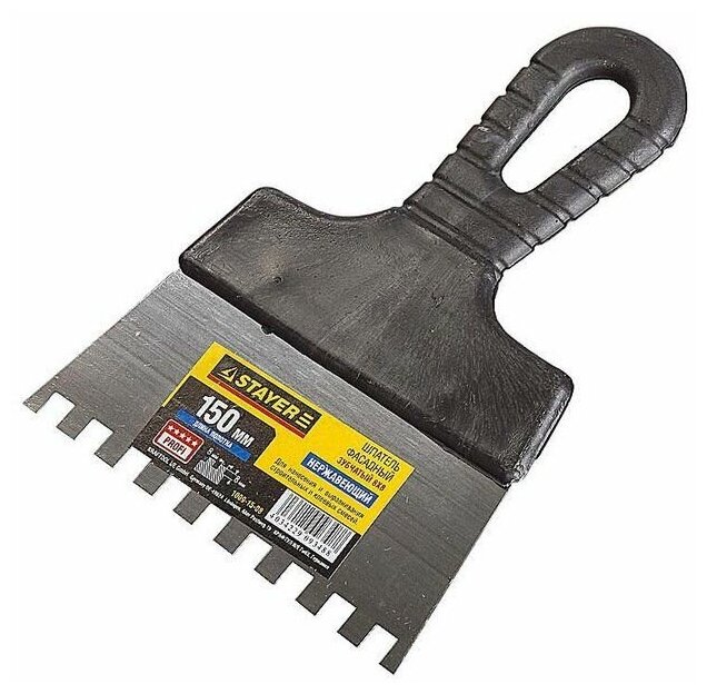СохранитьSTAYER Шпатель STAYER "PROFESSIONAL" нержавеющий зубчатый с пластмассовой ручкой, 100мм, зуб 4х4мм интересное: