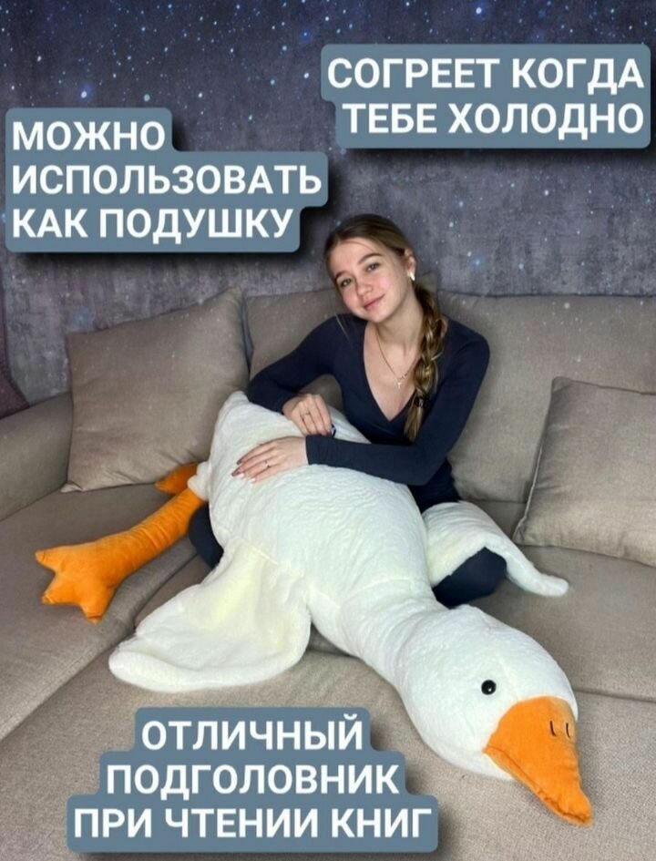 Мягкая игрушка "Плюшевый гусь обнимусь" 50 см интересное: