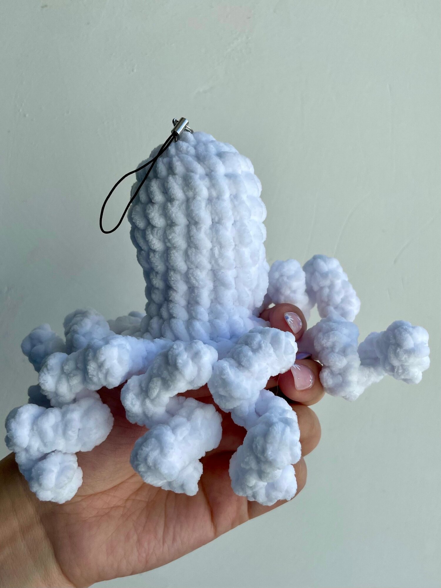 Вязаная мягкая игрушка "Осьминог" / для детей / брелок белый интересное: