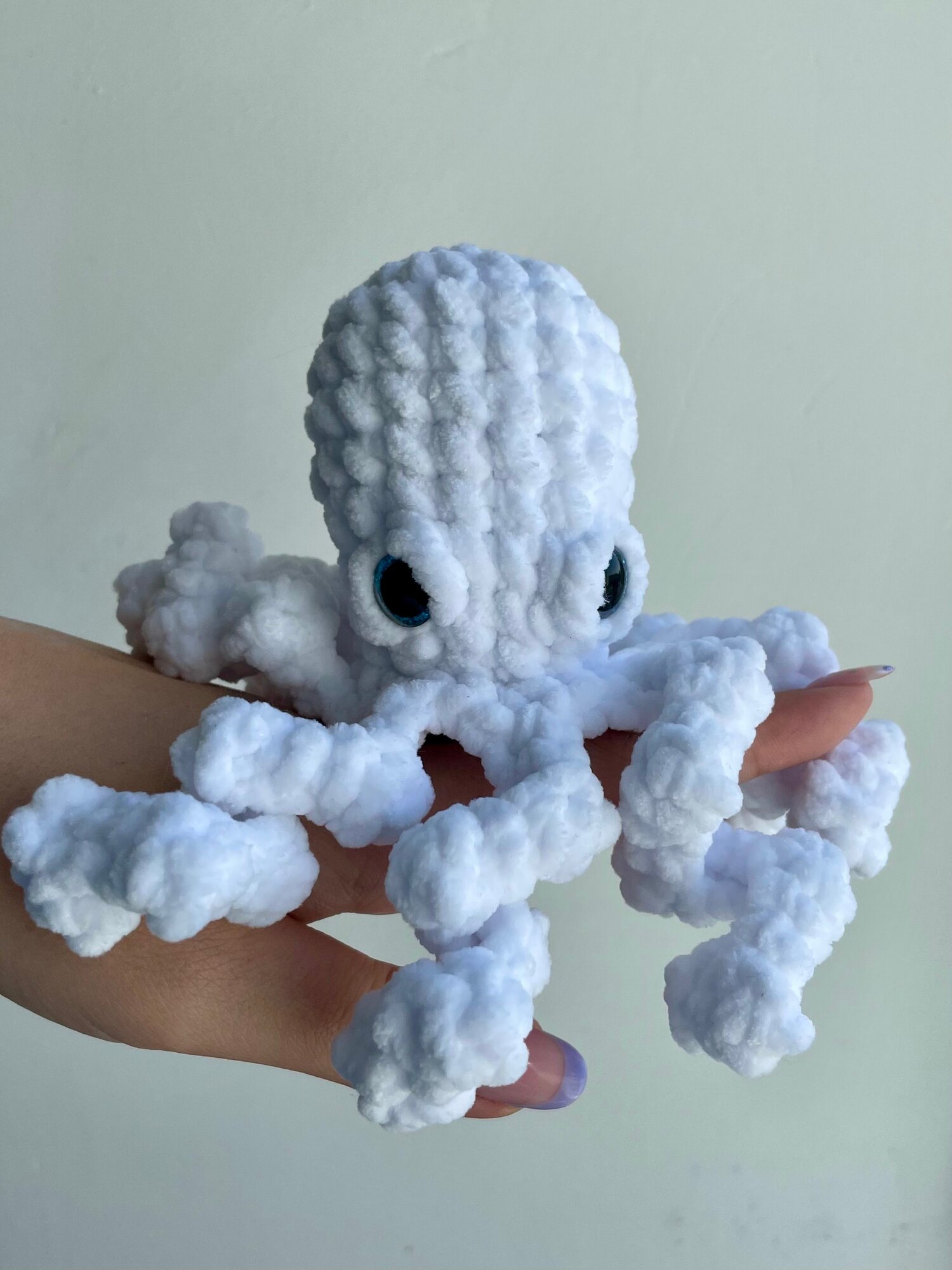 Купить Вязаная мягкая игрушка "Осьминог" / для детей / брелок белый