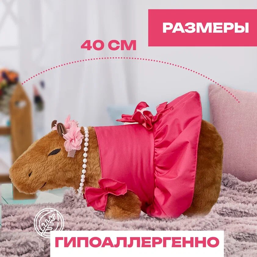 Мягкая плюшевая игрушка "Капибара Барби", цвет коричневый/розовый интересное: