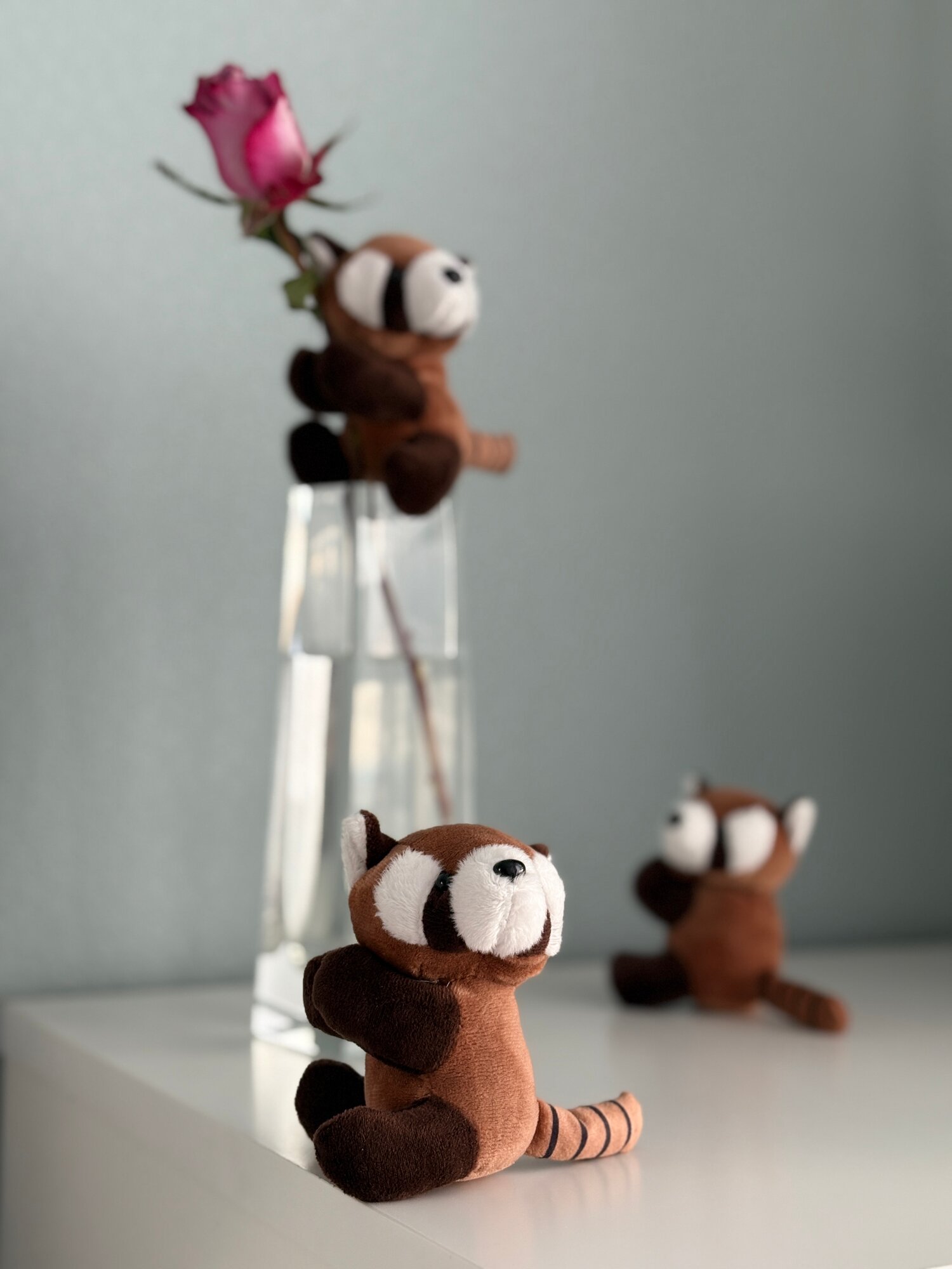 Мягкая игрушка "Красная панда" 9см. Универсальный зажим. Плюшевая, бархатная